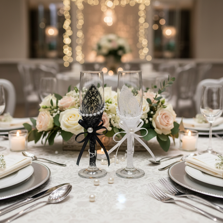 AKDC Wedding Bride & Groom Champagne Flute Glass Set...