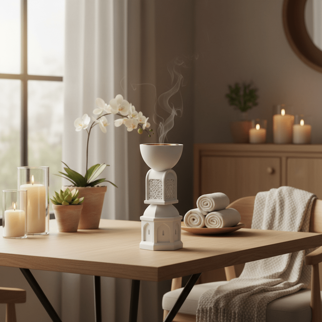 AKDC Classic White Ceramic Incense Burner – Timeless Decorative Piece for Home, Meditation, or Aromatherapy – 22 cm