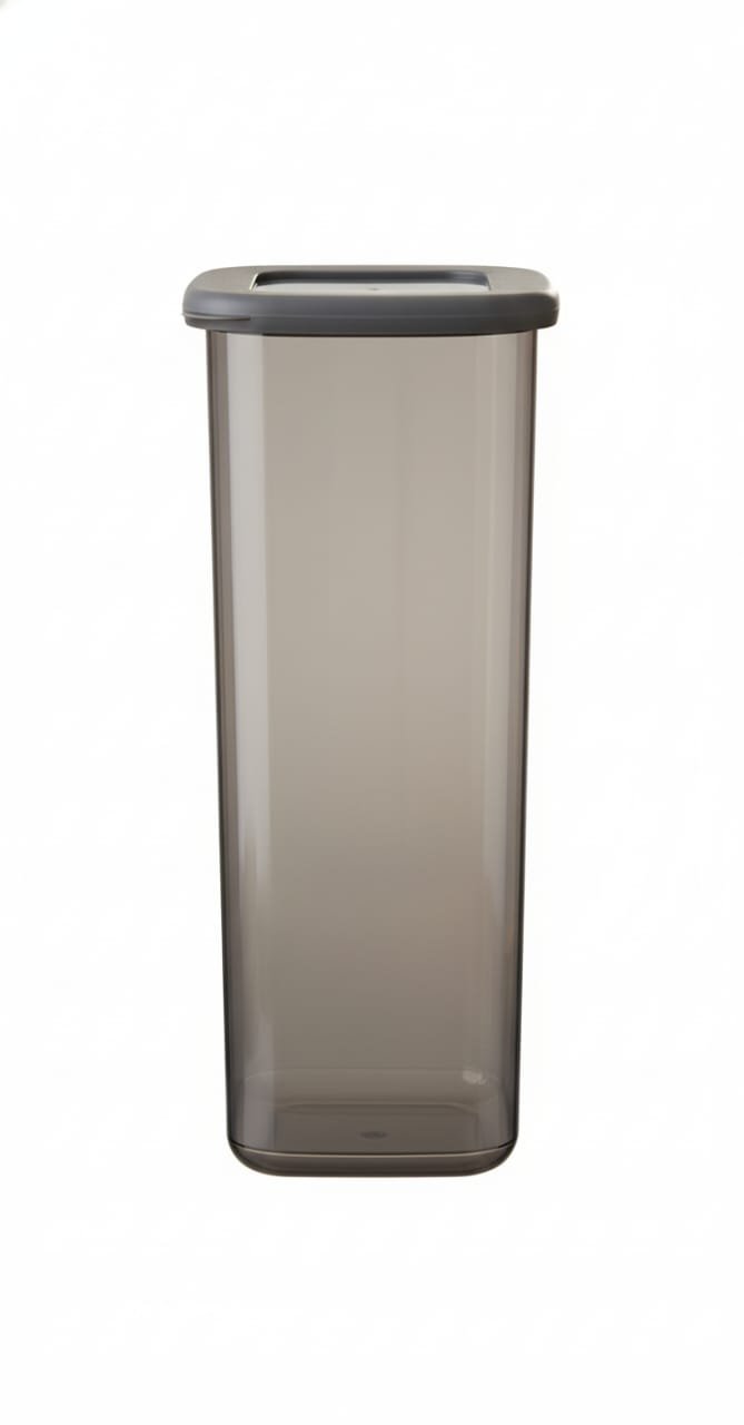FOLY LIFE Square Storage Box 1.75L Transparent Gray | Double Injection Plastic Food Container