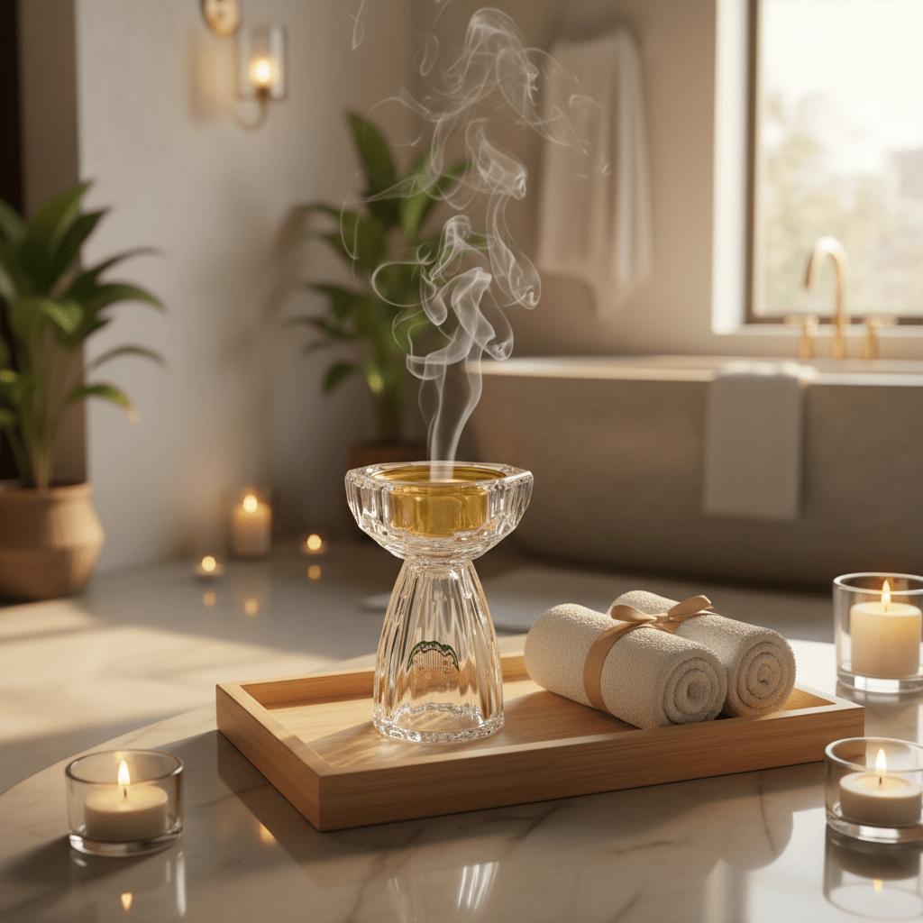 Elevate your daily rituals with this exquisitely crafted glass incense burner, where timeless design meets functional elegance. Hand-finished with precision-cut facets that catch and refract light beautifully, this piece transforms any space into a sanctuary of calm.