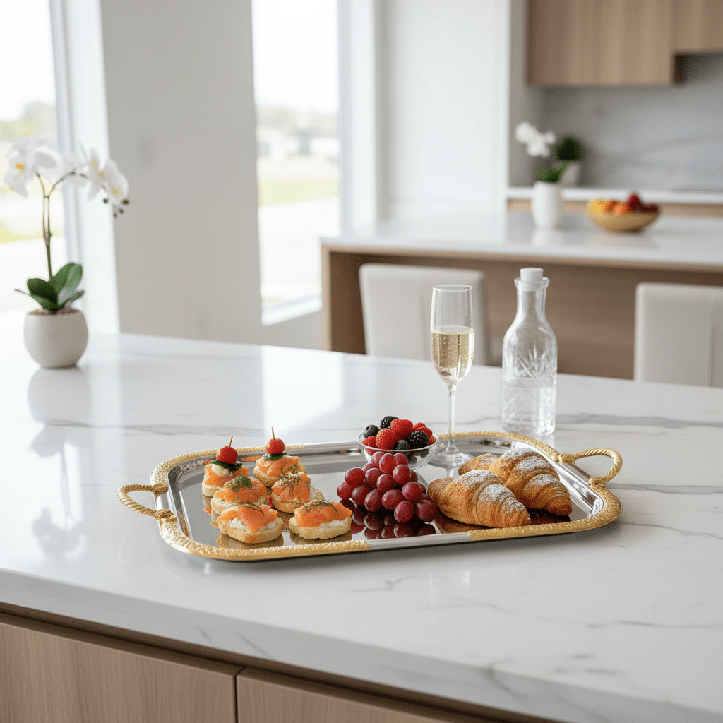 Perfect for formal dinner parties, casual gatherings, or everyday use, this serving tray seamlessly transitions from kitchen to dining room to outdoor entertaining. The dual handles ensure comfortable, secure carrying, while the refined finish complements both contemporary and classic décor styles.