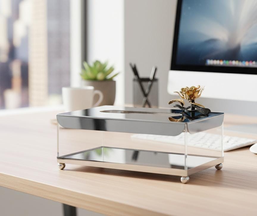 MAY FLOWER Luxury Metallic Tissue Box – Silver with Gold Finish Elegant Design – Stylish Tissue Holder for Living Room, Office, or Vanity Table