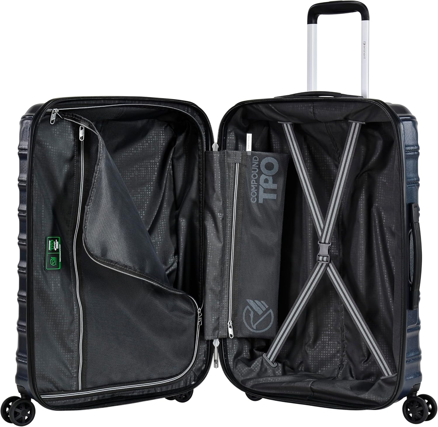 - Organized Interior: Our spinner suitcase with wheels has well organized interior compartments, the main compartments lined with polyester material. One compartment is having with elastic cross band with large space. And the other side is having a compartment with mesh pocket and attached pocket with it.