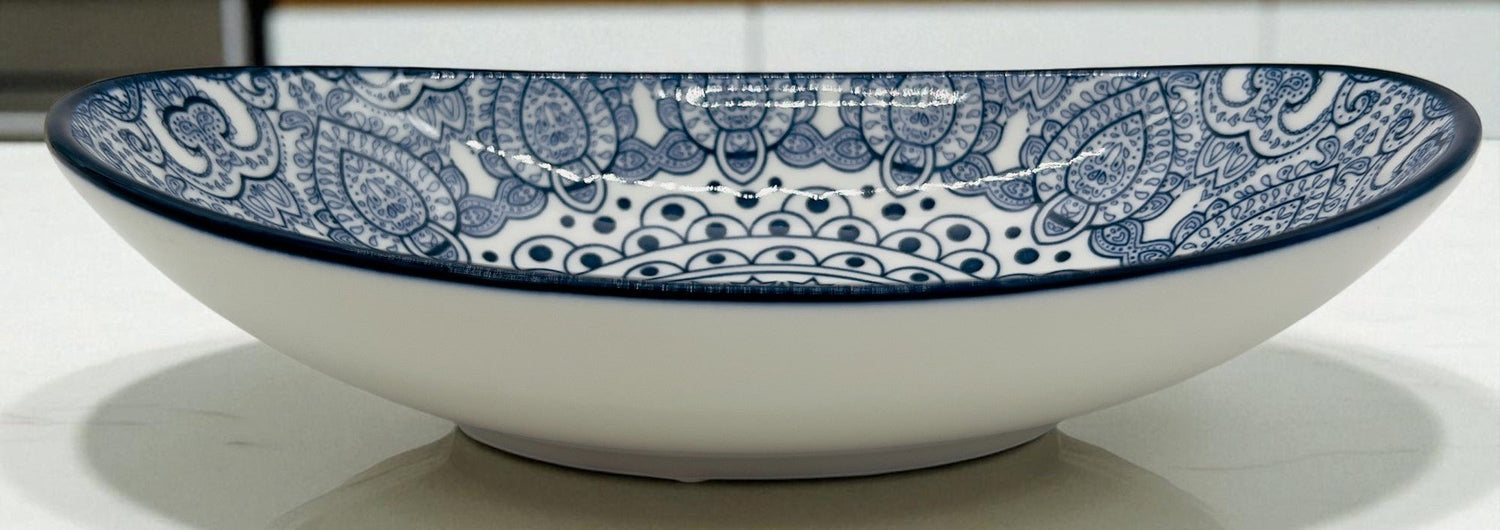 Che Brucia Ceramic Oval Bowl 8", Blue Floral Pattern