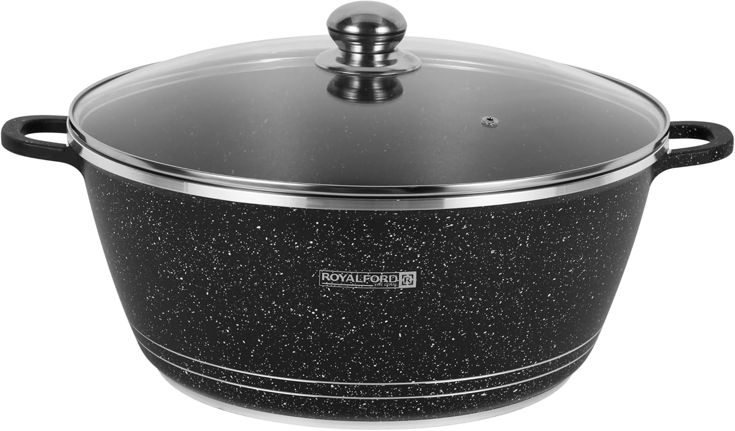 Royalford 40 cm Die Cast Casserole- RF12704/ Non-Stick Cookware with Granite Coating, Compatible with Hot Plate, Halogen, Gas Cooktops