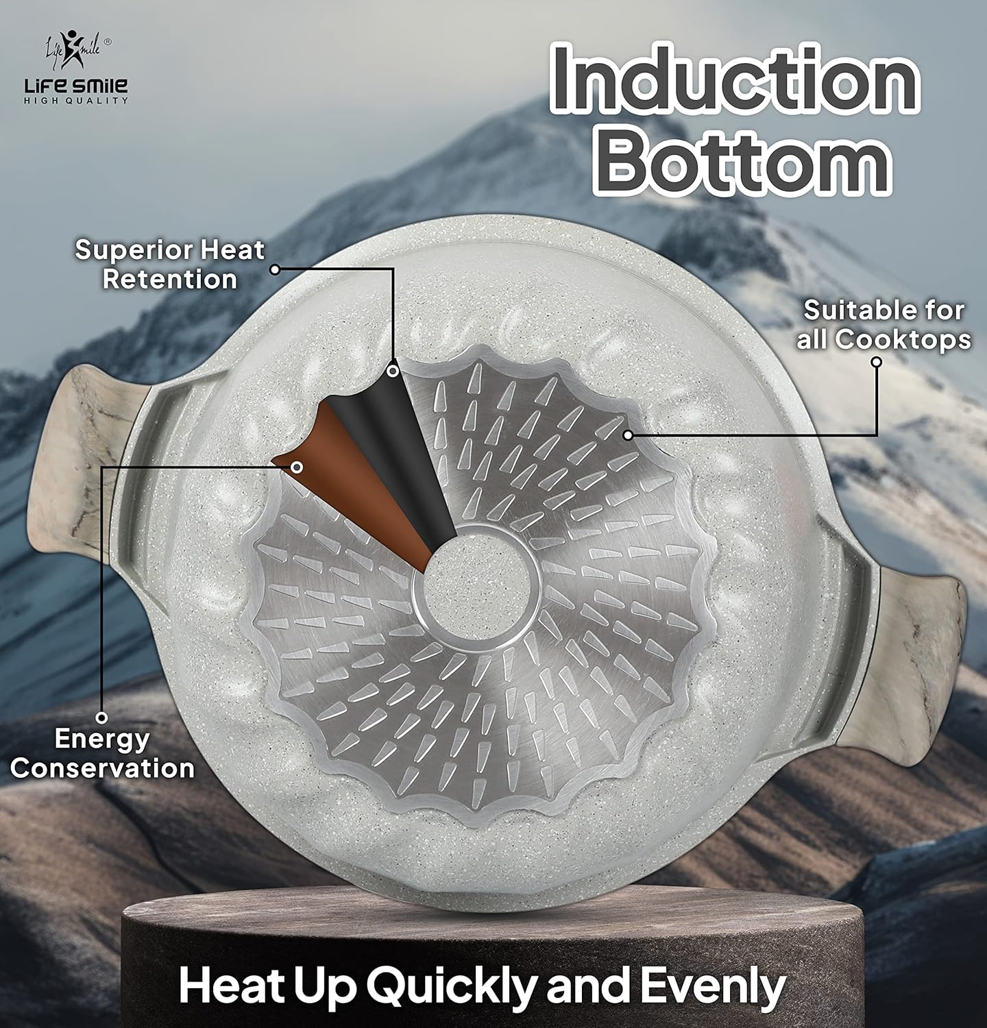 LIFE SMILE Elbrus Series 6pcs Granite Coating Cookware Set, Soup Pot with Lid- 16cm, 20cm, 24cm