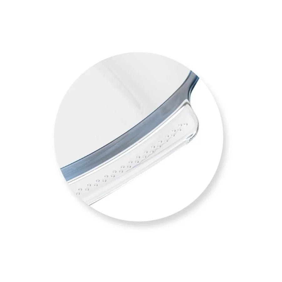 A 2.7-liter baking dish designed with durable borosilicate glass. Ideal for baking, roasting, and oven cooking. Clear glass design allows easy monitoring of food. Heat-resistant and dishwasher safe.