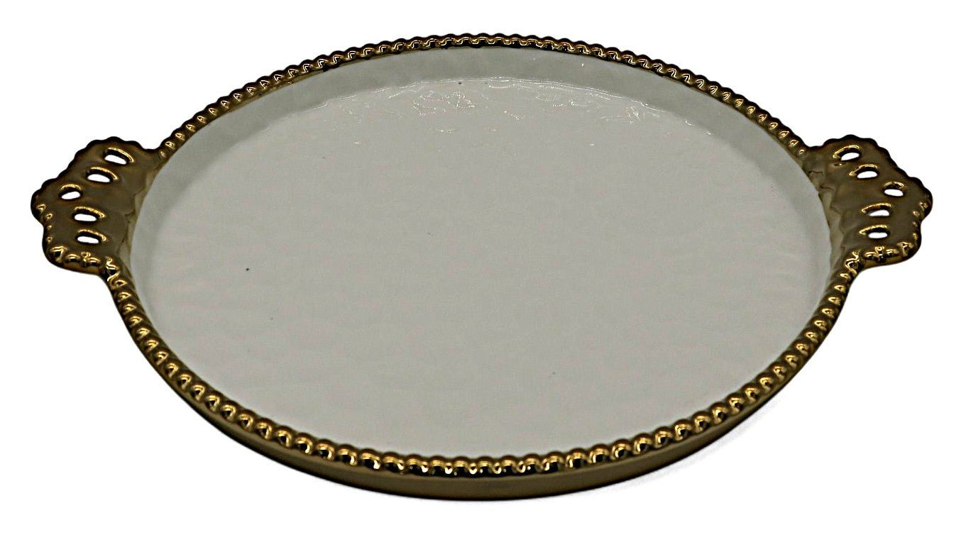 AKDC White & Gold Ceramic Fruit Plate – 25 cm, Decorative & Functional Elegance