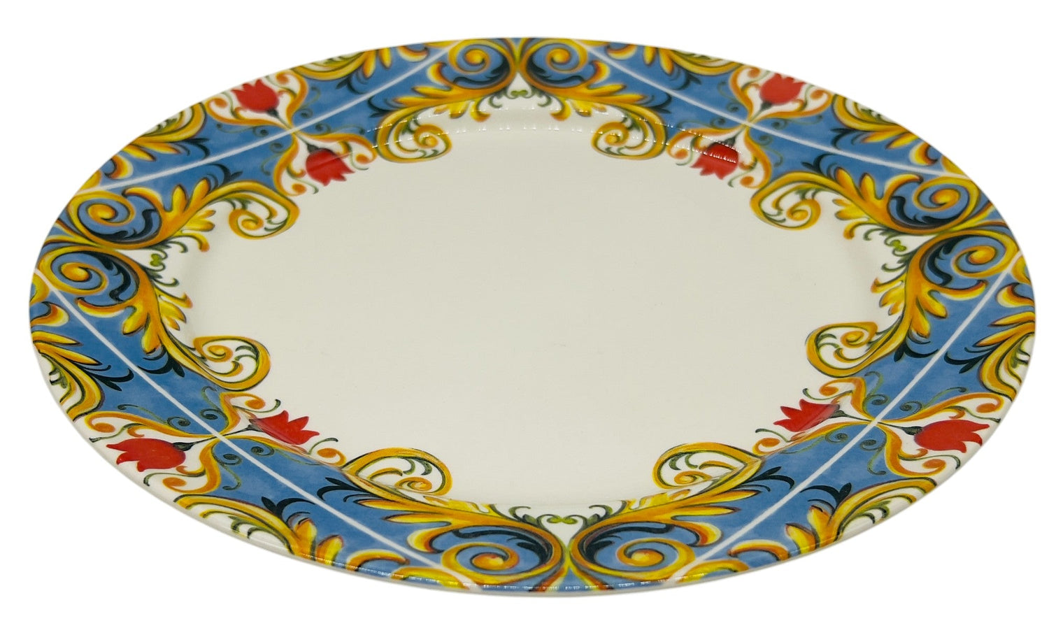 This large ceramic chop plate features a Medieval multicolor pattern for a vibrant, vintage look. At 30.4cm, it offers ample space for hearty meals or serving guests. The durable ceramic construction makes it ideal for daily use or special gatherings. A beautiful fusion of heritage and functionality.