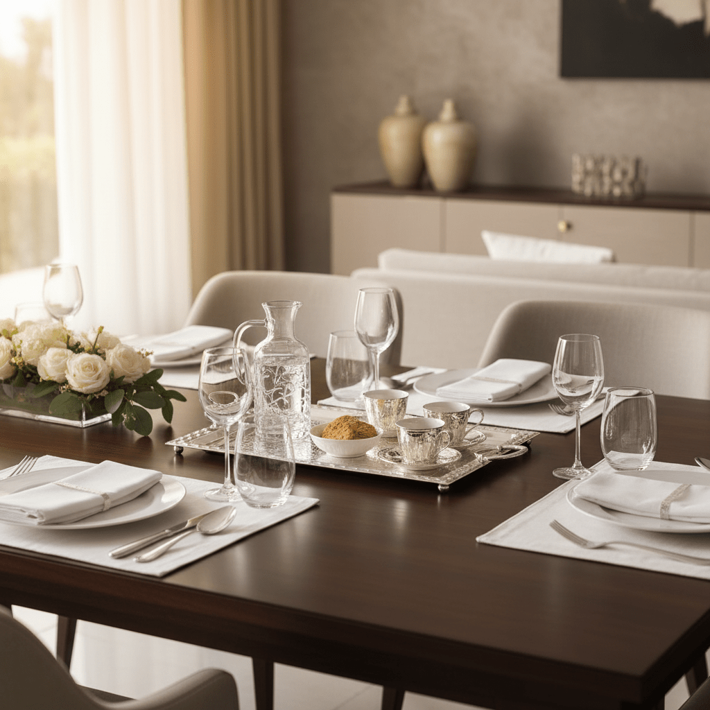 Elevate your entertaining with this exquisite rectangular serving tray, featuring intricate embossed floral patterns that catch the light beautifully. Crafted with meticulous attention to detail, this statement piece combines timeless elegance with everyday functionality.