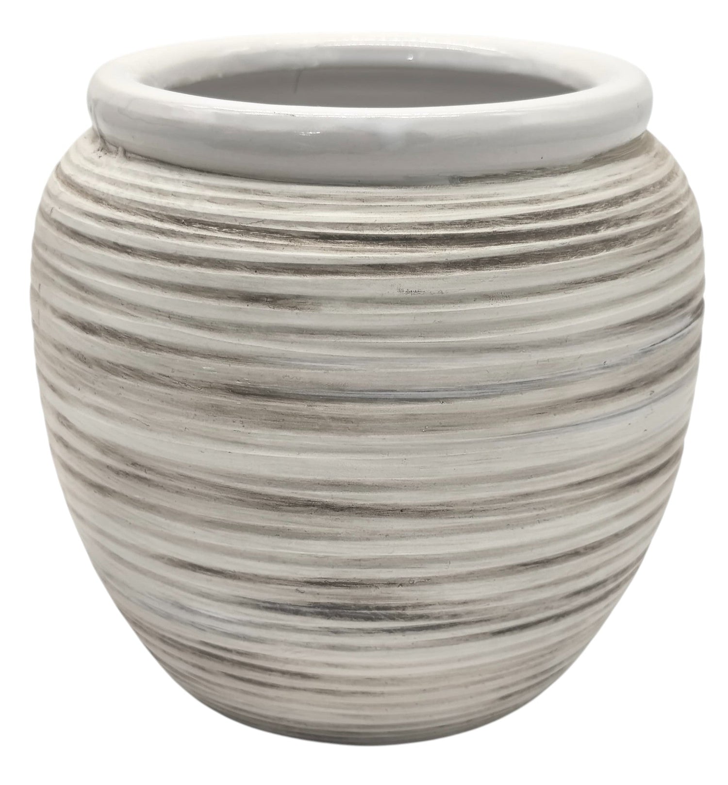 AKDC Ceramic With Clay Coating Planter Pot 14.5cm*17cm, White/Brown Ripple Textured