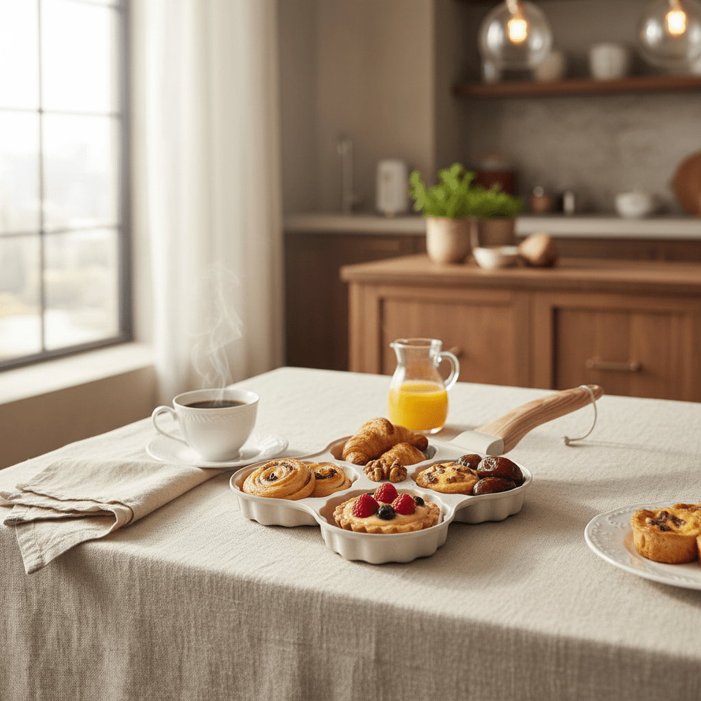 Why You'll Love It: This pan transforms everyday cooking into a delightful experience, combining functionality with aesthetic appeal. Whether you're preparing a quick weekday breakfast or hosting a leisurely weekend brunch, this multi-compartment pan ensures even cooking and beautiful presentation every time.