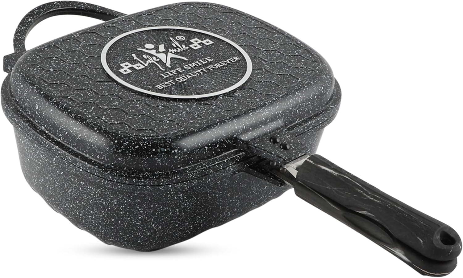 LIFE SMILE Granite Coating Double Grill Pan 30cm, Scrach Proof