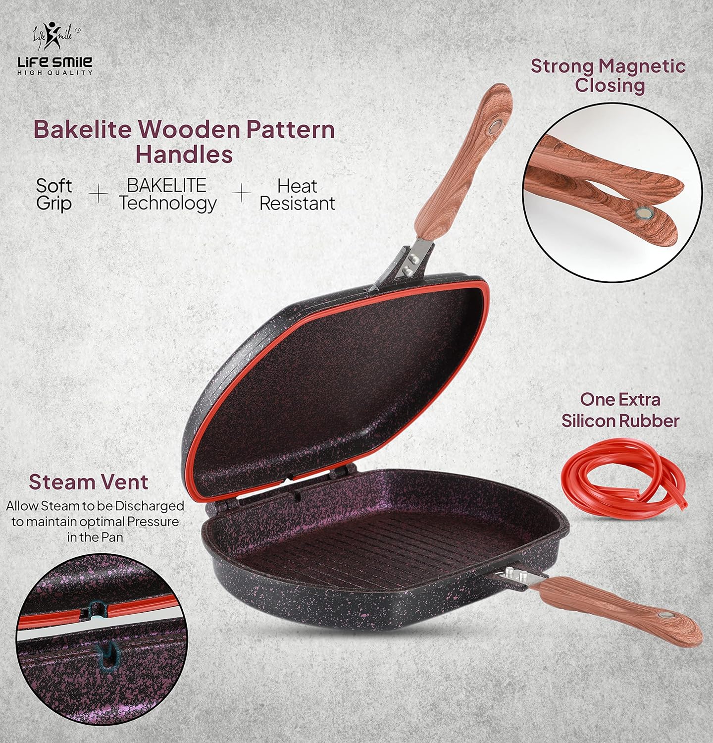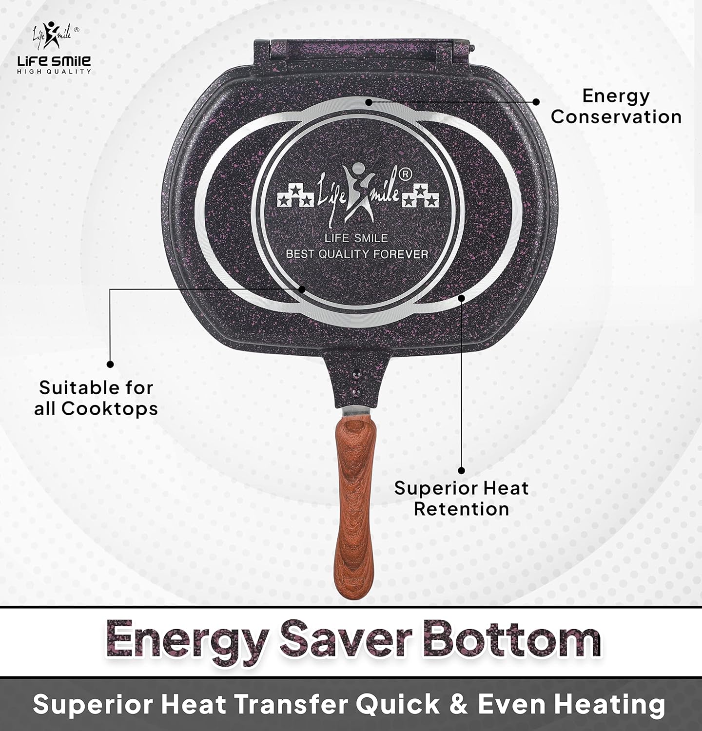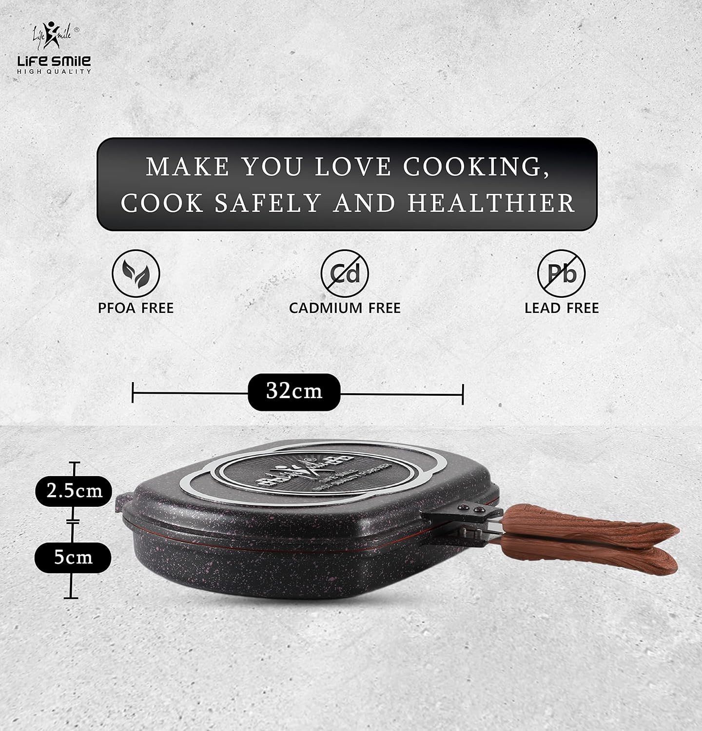 LIFE SMILE Granite Coating Double Grill Pan 32cm, Scrach Proof