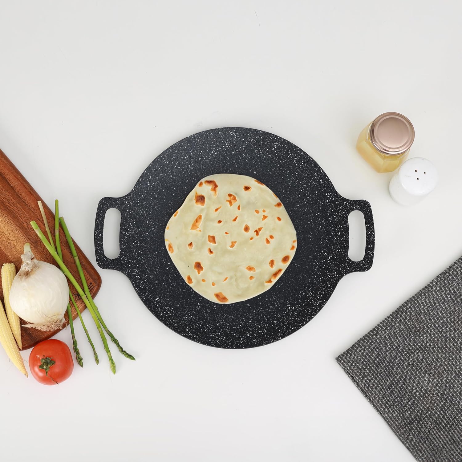 This Royalford Deep Tawa features a 30cm surface with a durable granite coating for effortless cooking and cleaning. Its aluminum body ensures even heat distribution while remaining lightweight. The induction-compatible base makes it suitable for all stovetops. Perfect for preparing chapatis, dosas, and parathas with minimal oil.