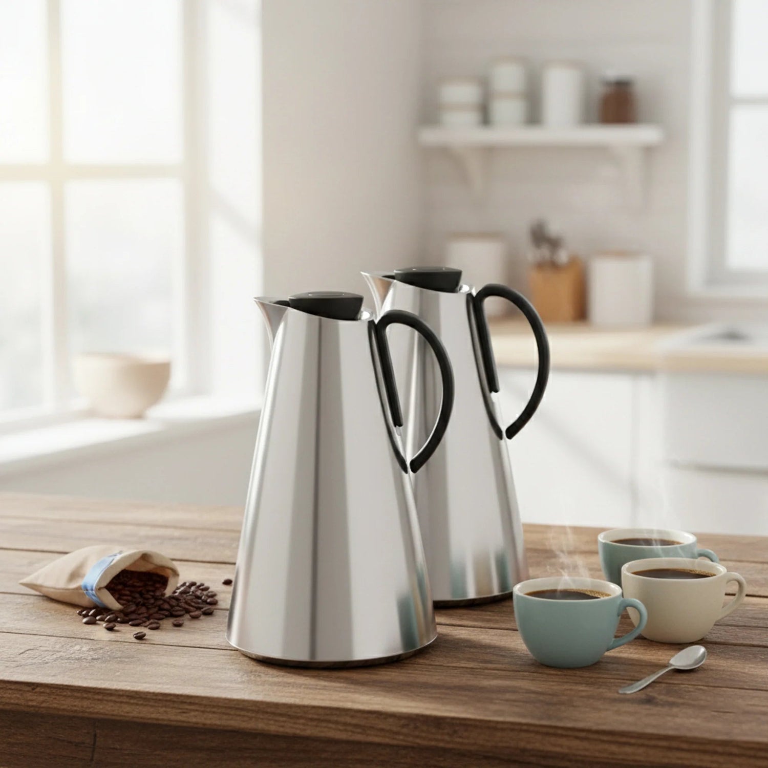 The HS-2502 Vacuum Flask 2-Piece Set by LUHPAR is designed to deliver dependable heat retention with a clean, contemporary look. Finished in a refined matt silver body with contrasting black handles, this coordinated set offers a balanced combination of durability and understated elegance. The streamlined tapered form ensures a comfortable grip and controlled pouring, while the push-button lid allows easy one-hand operation during serving. Crafted with a rust-resistant outer body and a high-quality glass inner, each flask is built to maintain beverage temperature for extended periods. Suitable for serving tea, coffee, or hot water, the HS-2502 set reflects LUHPAR’s focus on practical design, long-term usability, and professional presentation—making it ideal for daily home use, guest service, and hospitality environments.
