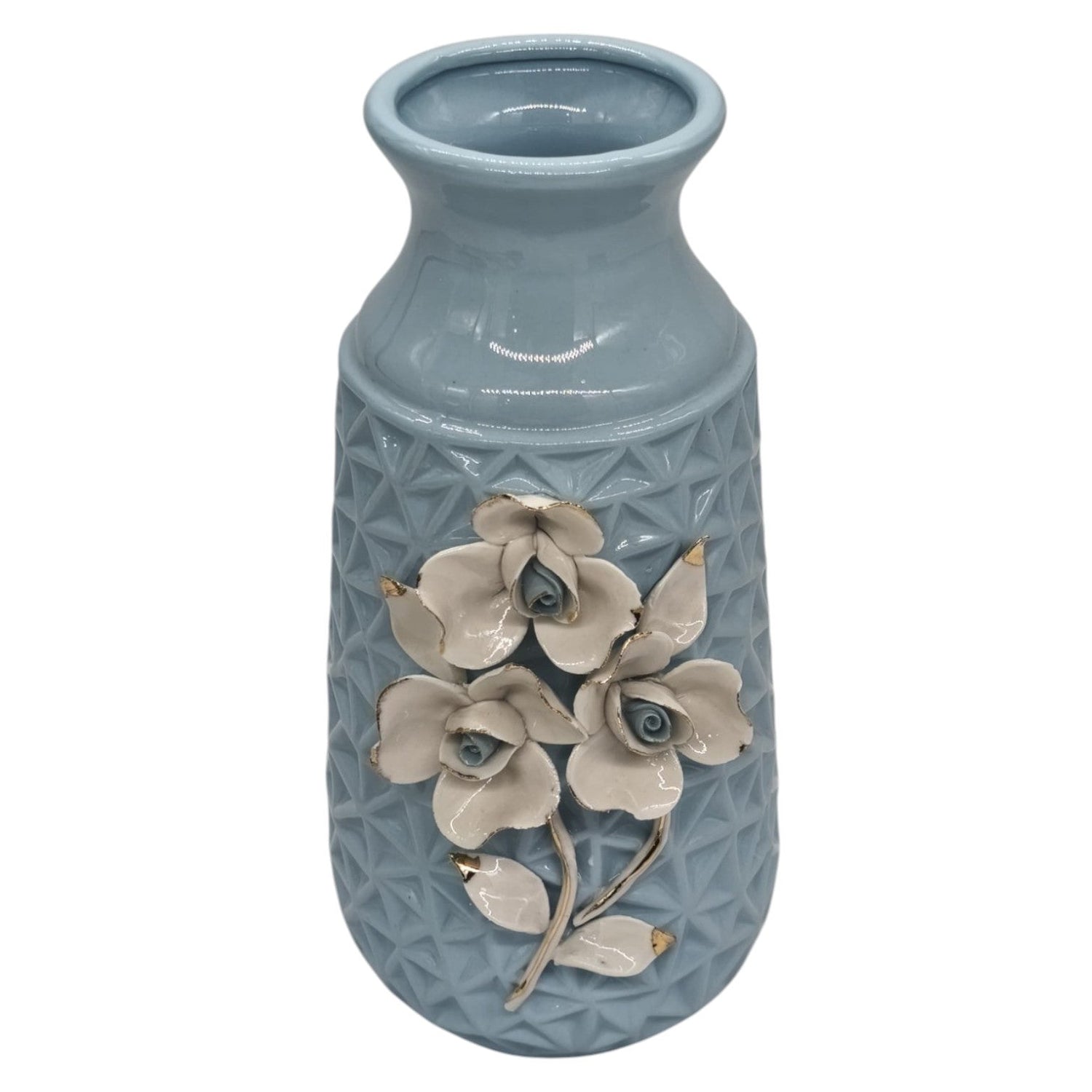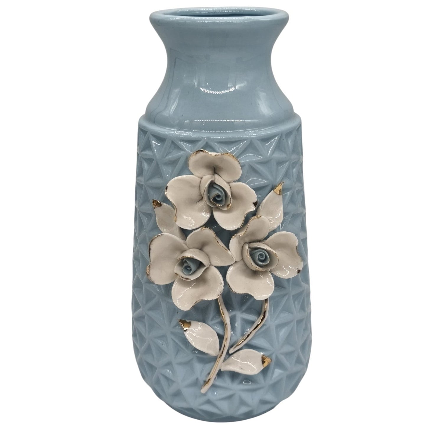 AKDC Ceramic Flower Vase for Home Decor Table Centerpieces, Flower Design Decorative Flowers Vase-24cmX8cm-Cyan