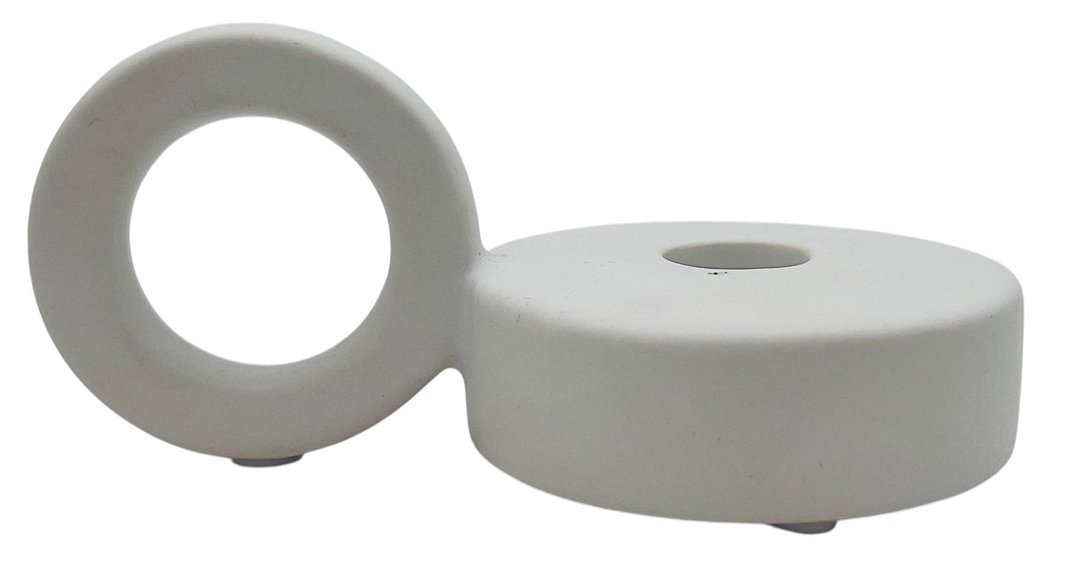 A minimalist white ceramic candle holder for elegant settings. Holds candles securely for safe use. Its simple design fits all décor styles. Perfect for everyday or festive decoration.