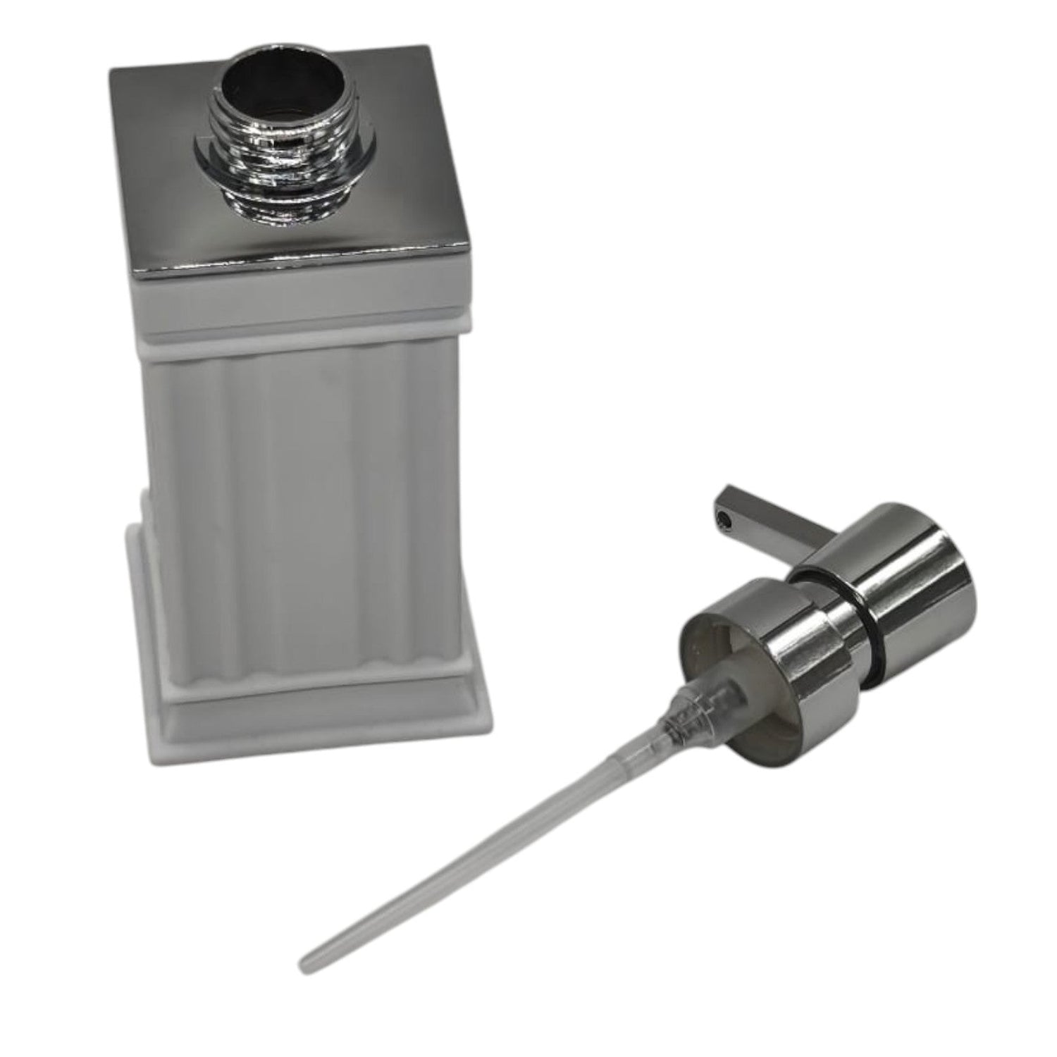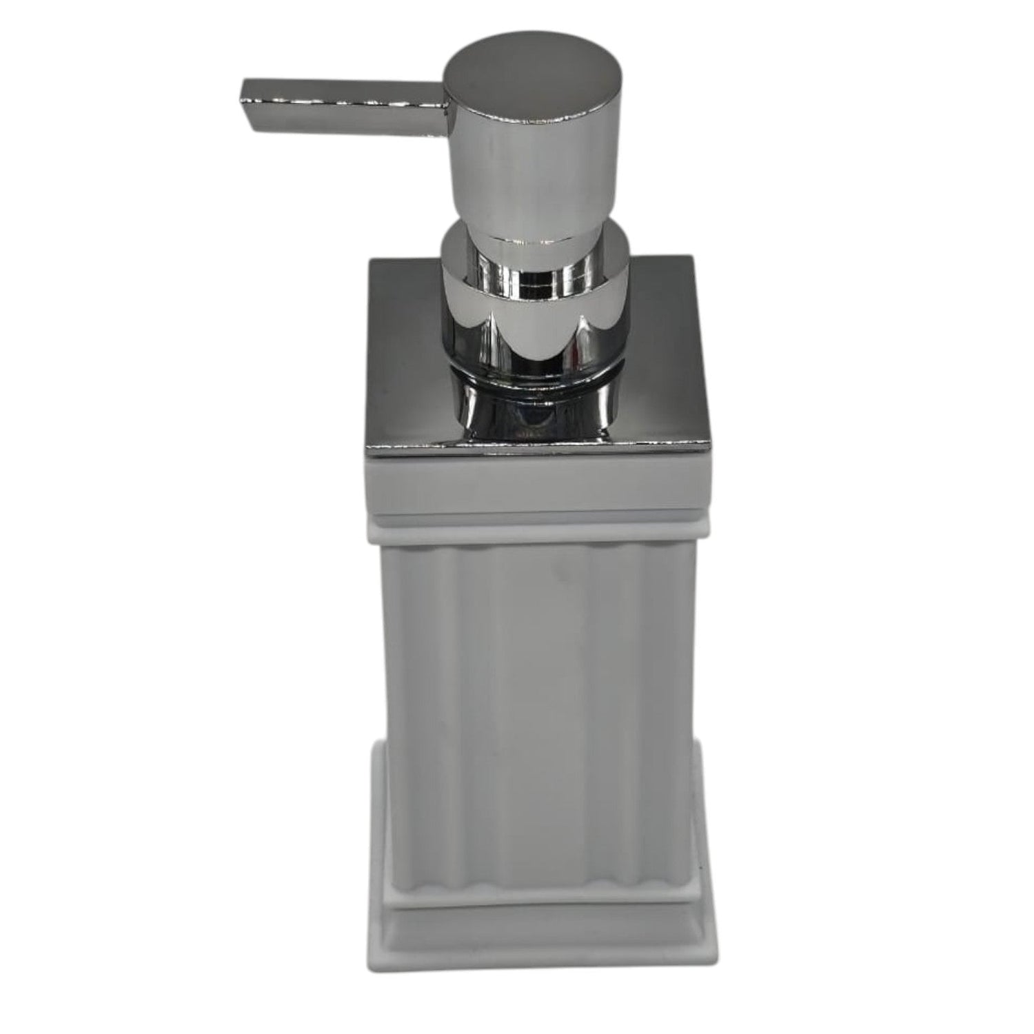 AKDC Plastic Liquid Soap Dispenser – 400ML White & Silver – Stylish and practical soap dispenser for bathroom or kitchen sinks. Features a durable plastic body and easy-to-press pump, ideal for hand soap, dish soap, or lotion.