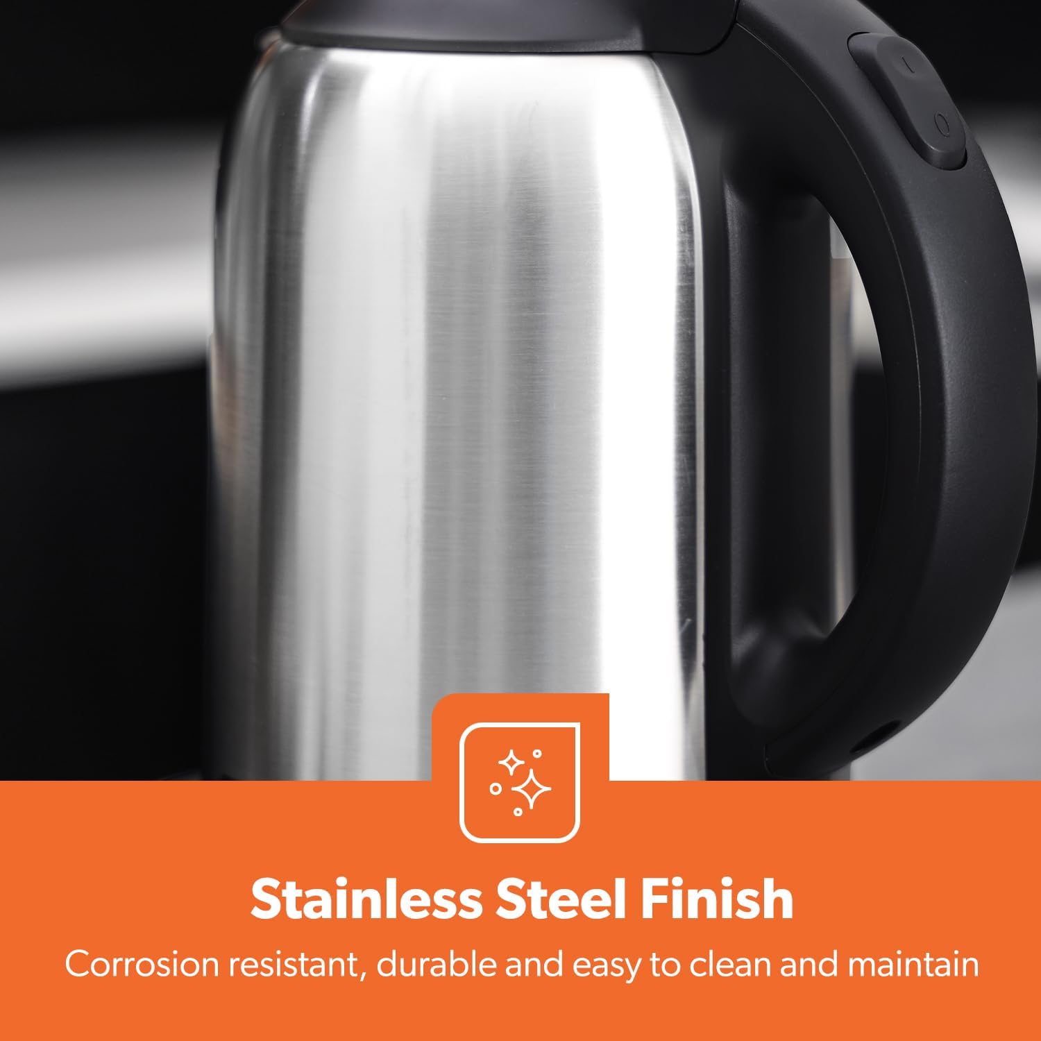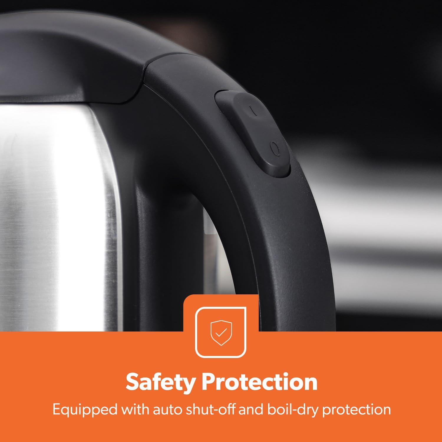Made from durable stainless steel, this kettle offers both style and performance. With a powerful 1800W motor, it boils water rapidly. Built-in auto shut-off and boil-dry protection provide safety. Its 1.8L capacity is perfect for households and gatherings.