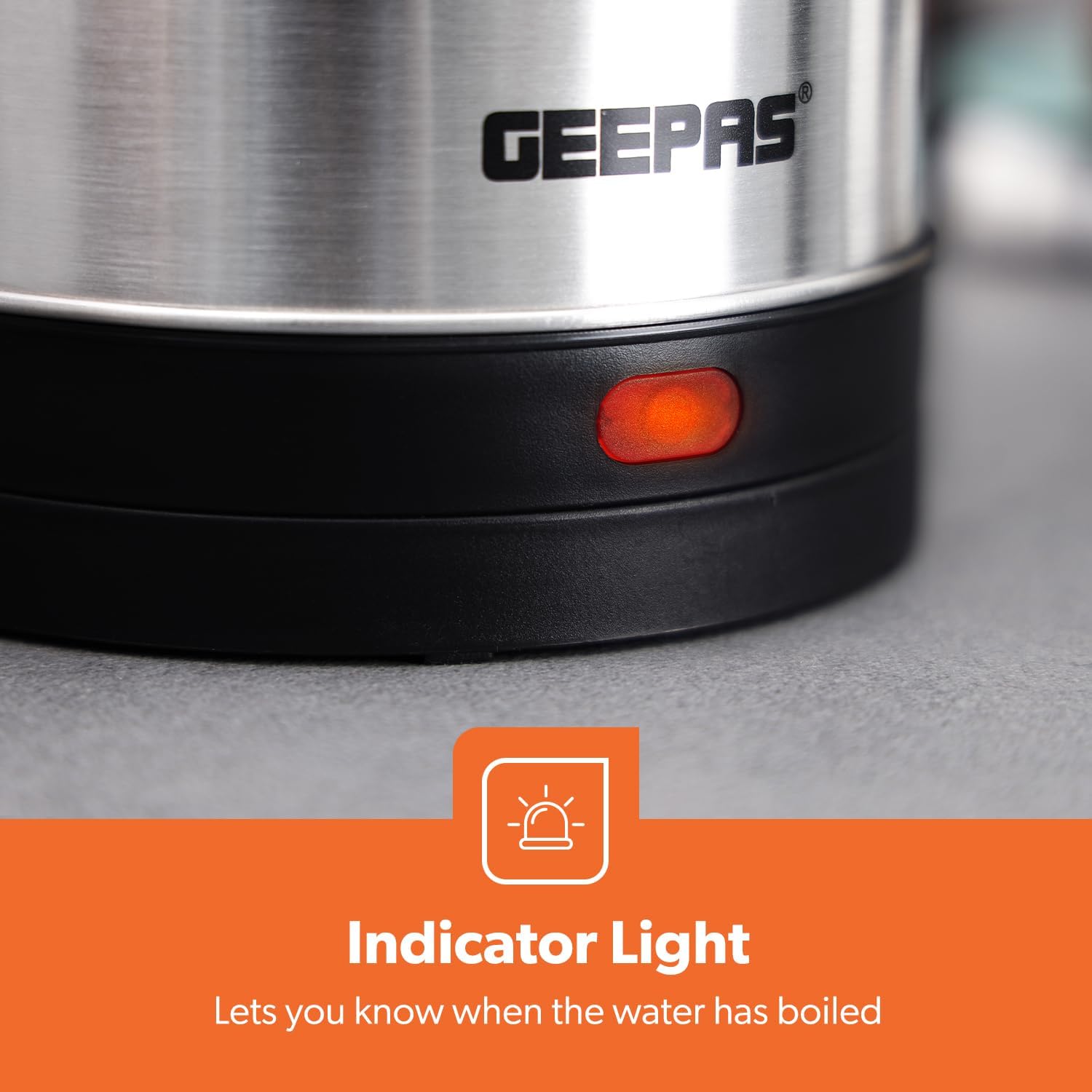 Geepas Stainless Steel Electric Kettle With Auto Shutt off and Boil Dry Protection 1.8 L 1800 W GK5466 Silver/Black