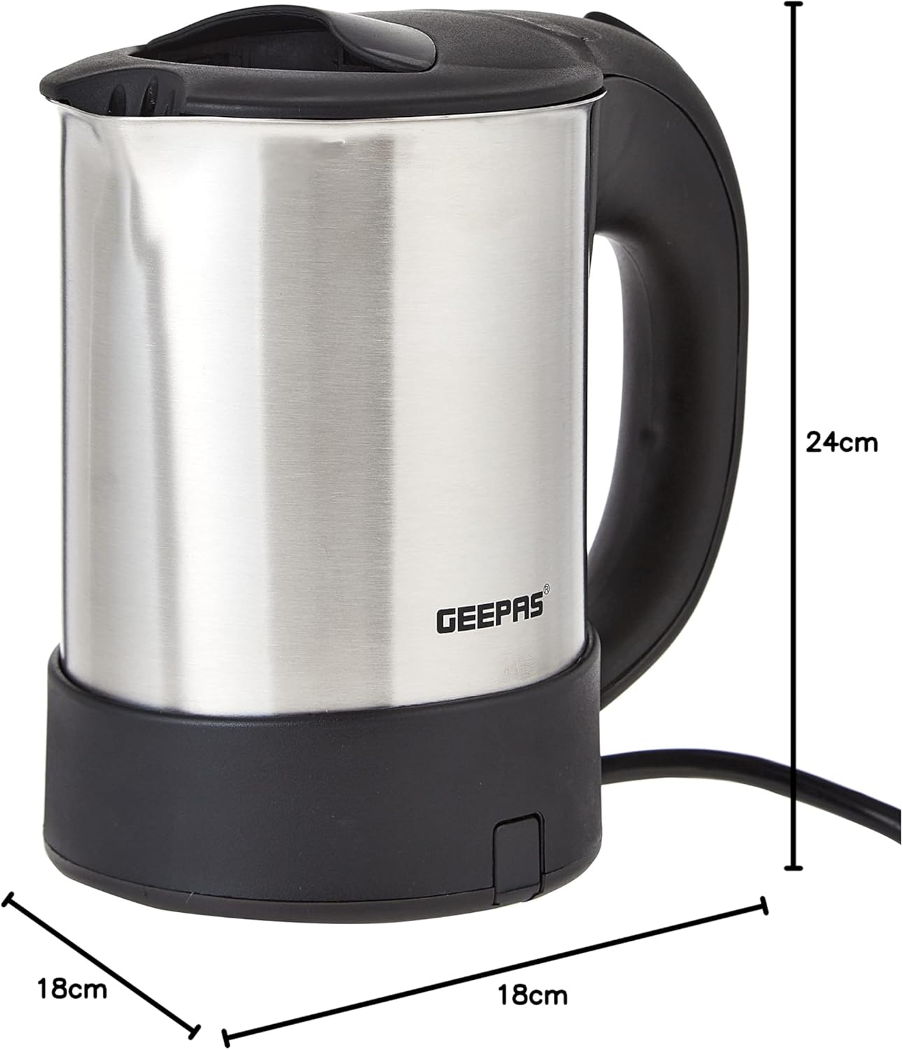 Geepas Stainless Steel Travel Kettle, Silver/Black, 1100 W, 0.5 L, GK175