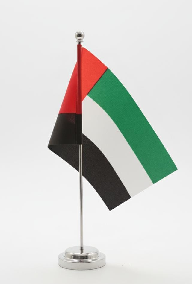 AKDC Desktop Flag Stand – Stylish Silver Finish 25CM Base for Office & Reception Desk Display