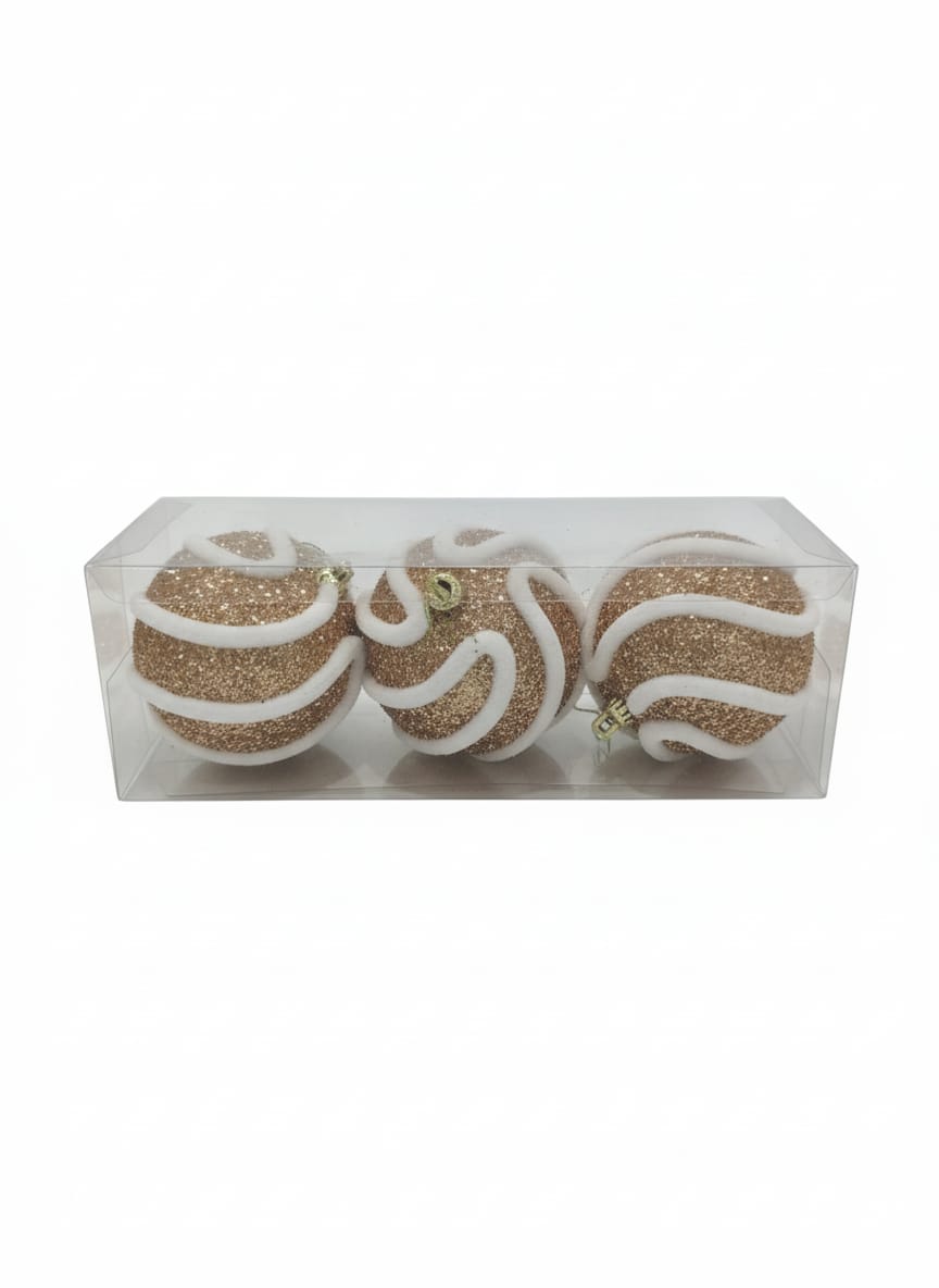 AKDC 3-Piece Gold Christmas Hanging Ball Décor with White Fur Finish – Luxury Holiday Tree Ornaments