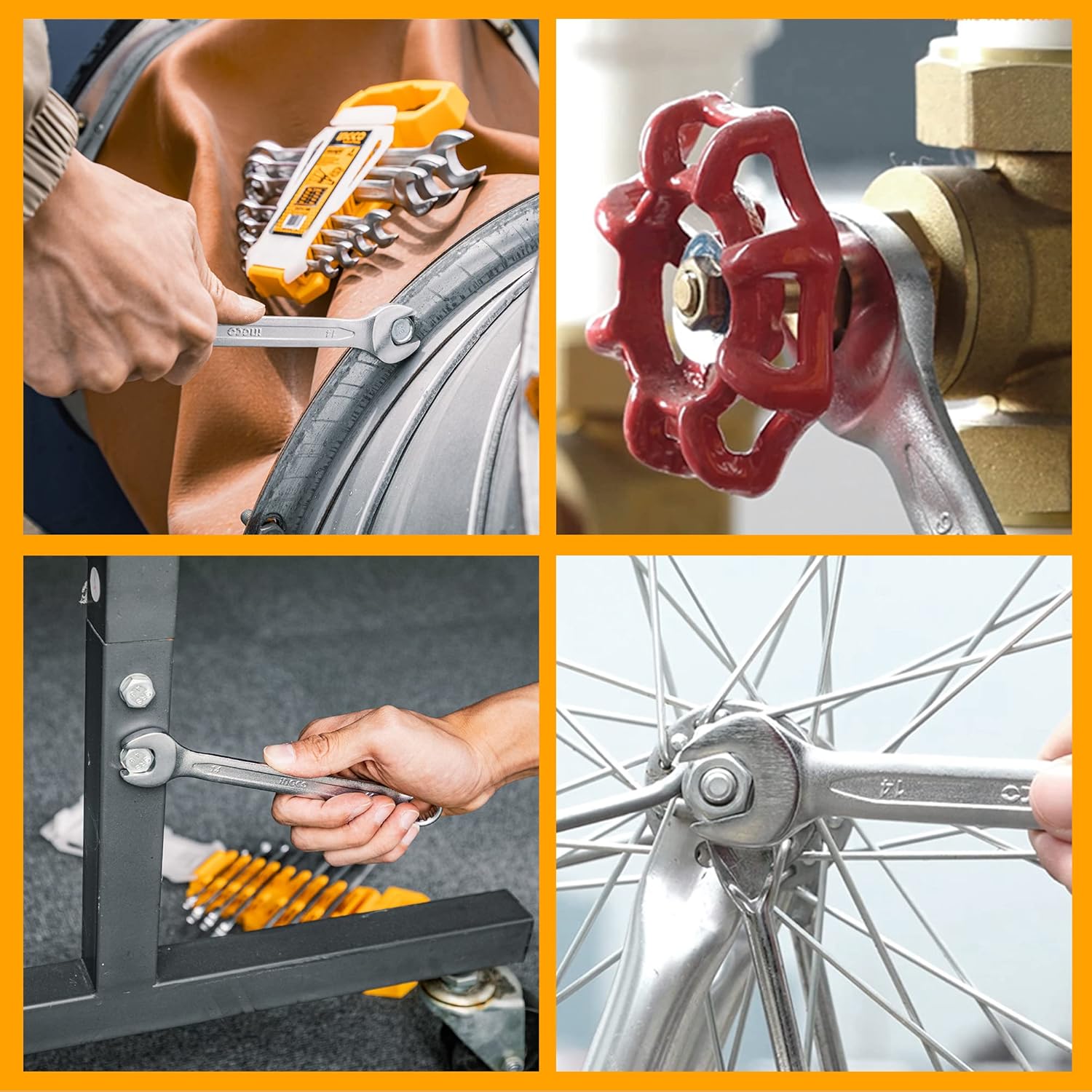 High-quality chrome vanadium steel for strength. Polished finish resists rust and corrosion. Includes 8 popular sizes for various applications. Comes in a holder for easy storage and access.