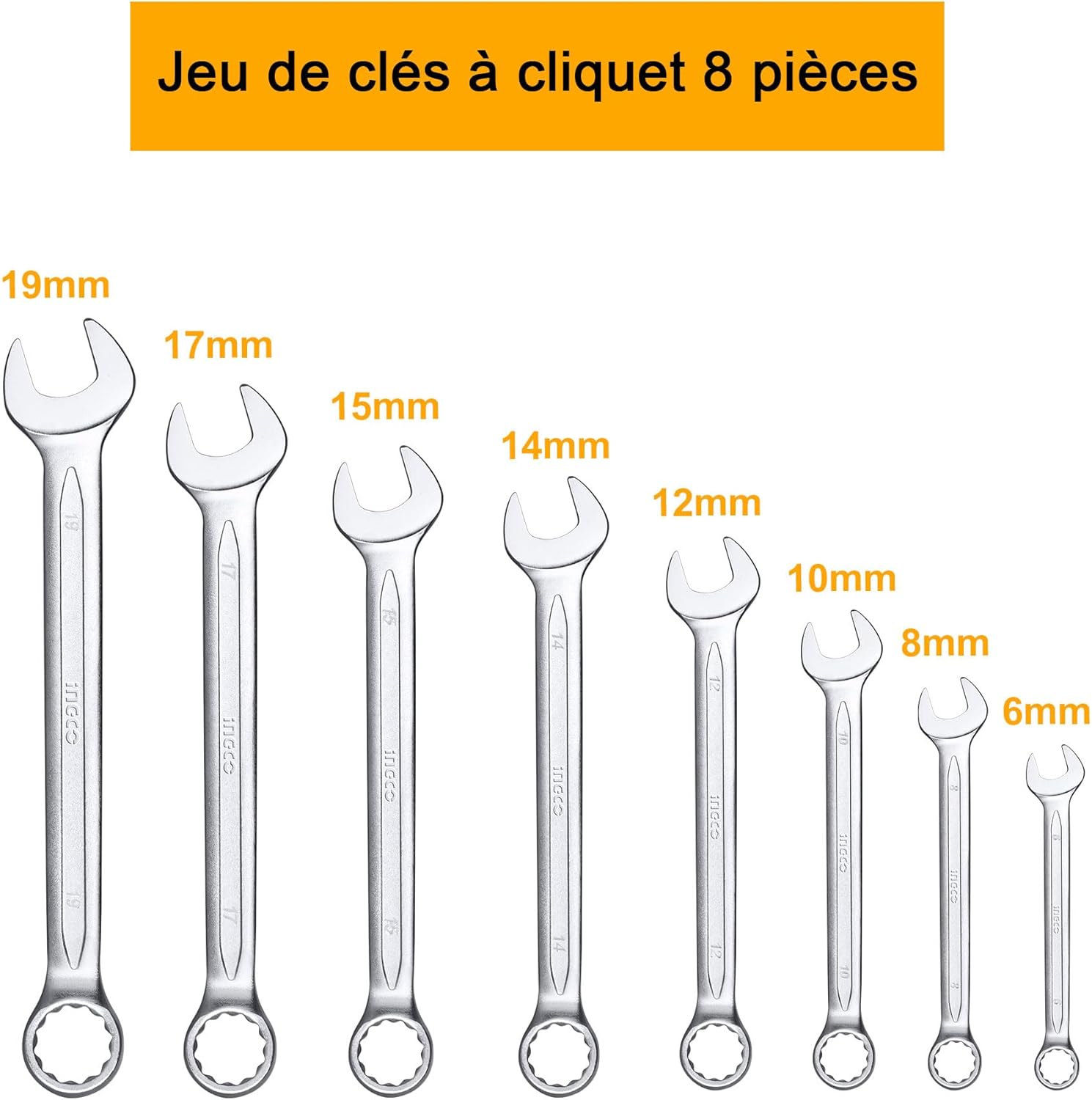 Ingco 8-Piece Combination Spanner Set, Chrome Finish, HKSPA1088