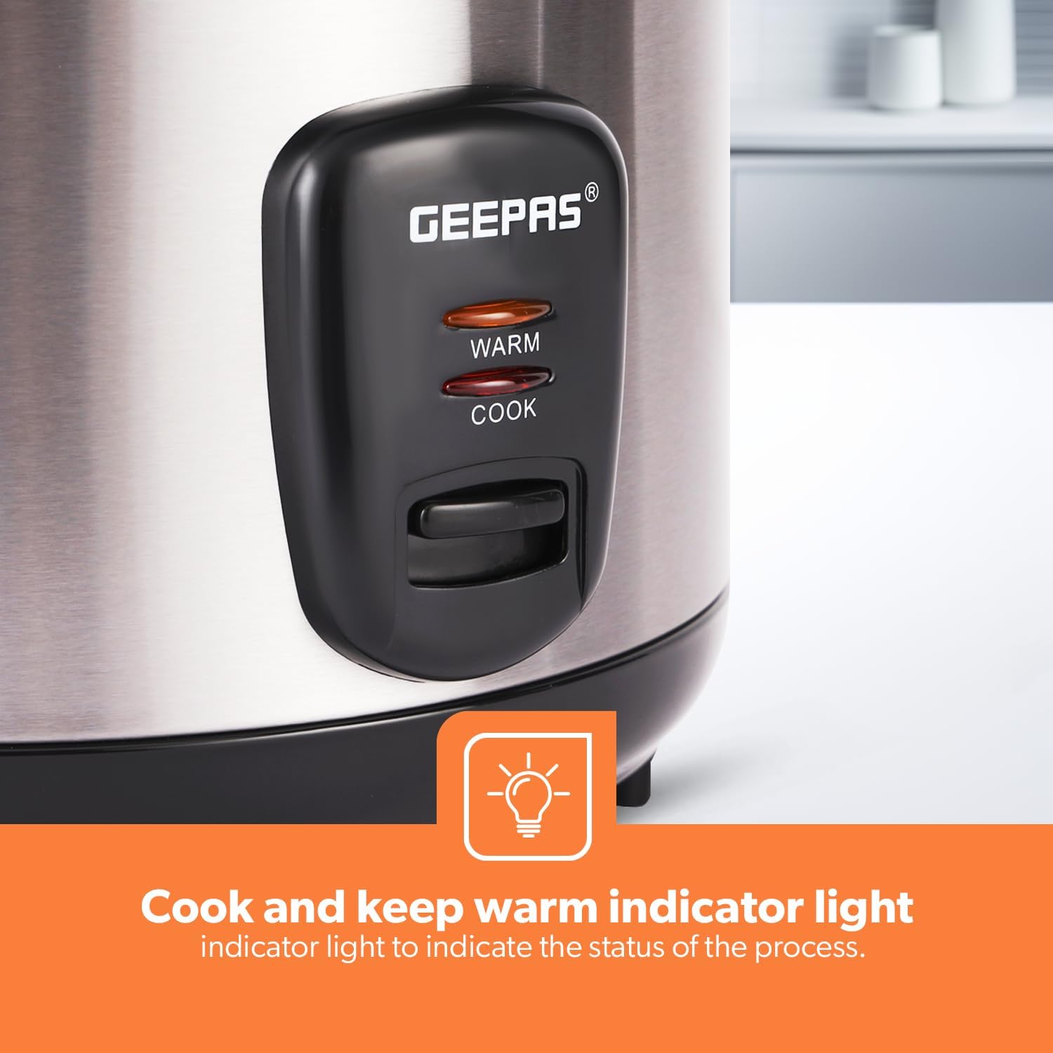 - The rice cooker features a cook and keep warm indicator light to indicate the status of the process.