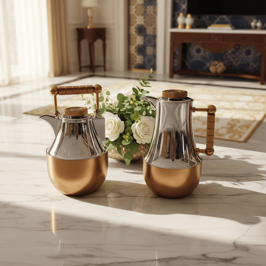 - Dual-Tone Design – Polished silver chrome paired with rich matte copper base for a contemporary Middle Eastern aesthetic