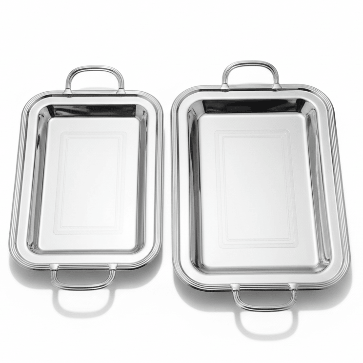 Elevate your entertaining with this exquisite 2-piece rectangular serving tray set, crafted from premium stainless steel with a brilliant mirror-polished finish. Designed for both everyday elegance and special occasions, these versatile trays bring sophisticated style to your table.