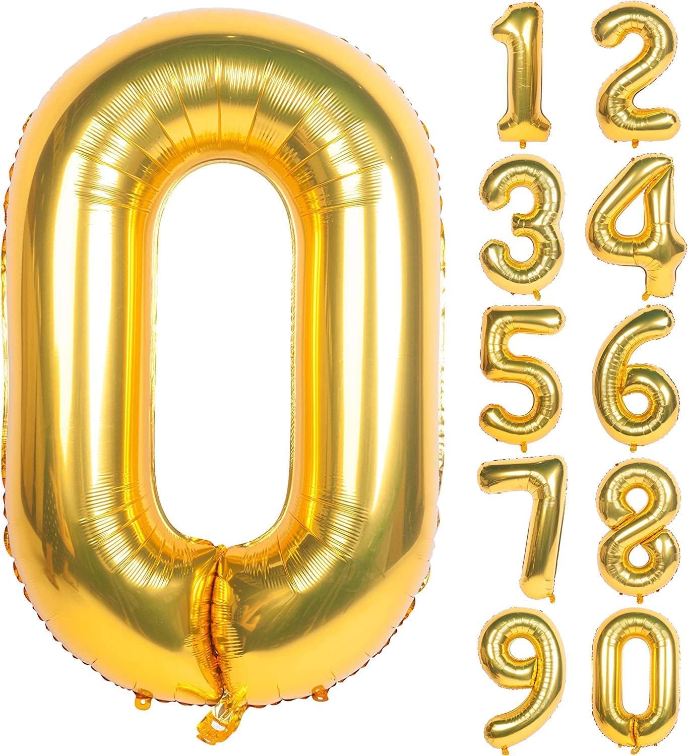 Party Point Number-0 Foil Balloon 32", Fills with Air or Helium, Gold