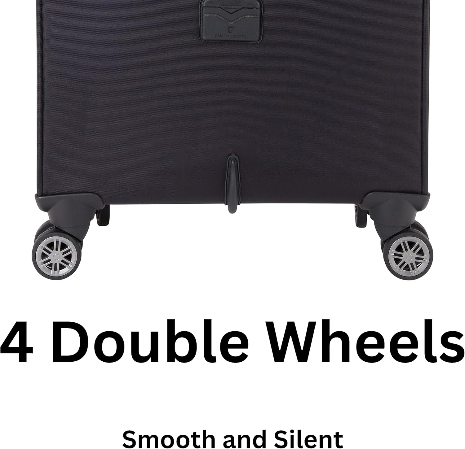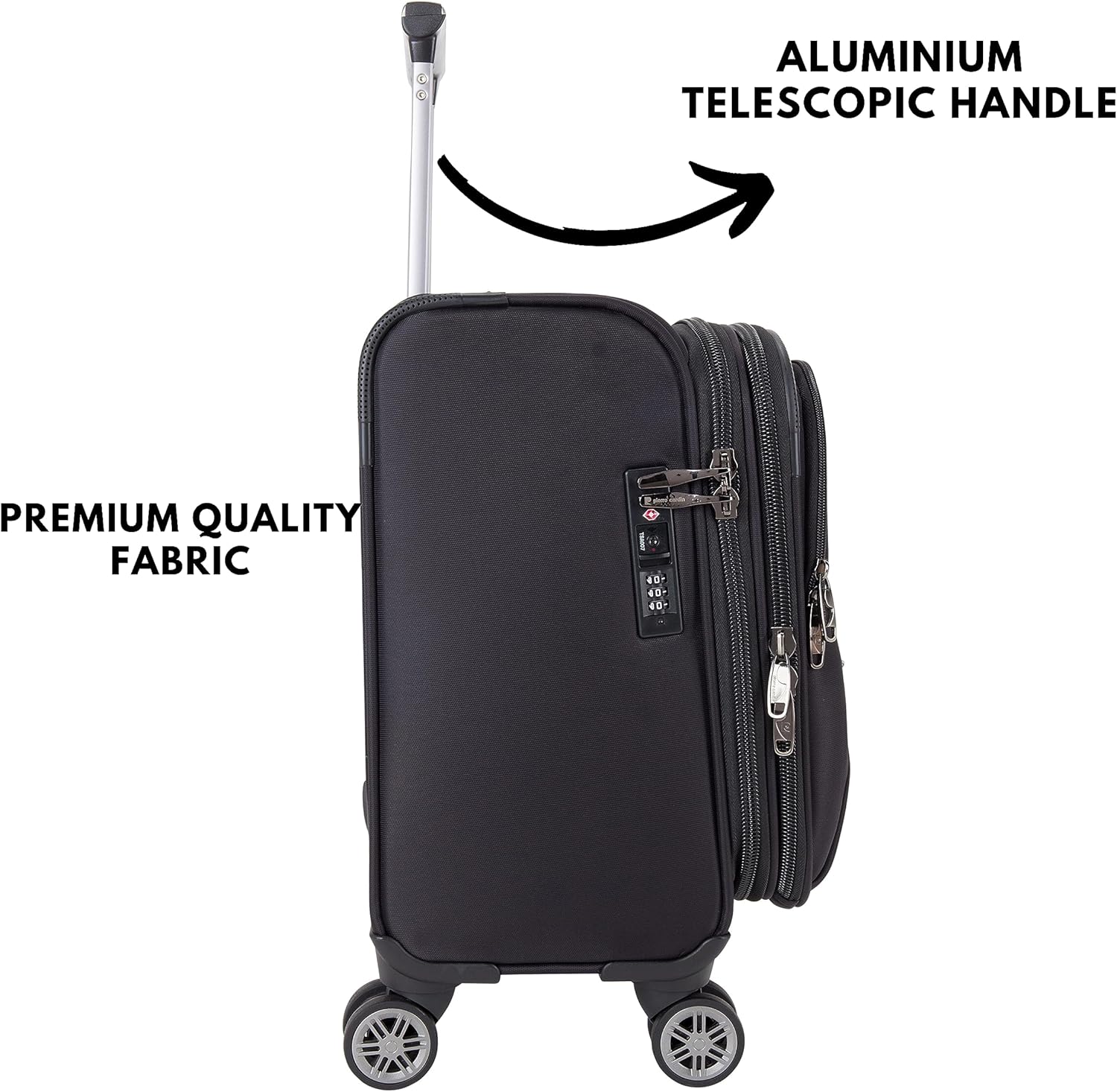 Wheel Type Spinner Number of wheels 4 Lock Type Combination Lock Handle Type Carrying Handle Strap Type Carrying Handle Water Resistance Level Water Resistant Material Type Fabric Shell Type Soft