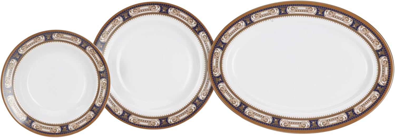 The Royalford 56pcs Elegant Melamine Dinnerware Set in Gentle Brown is ideal for everyday family meals and special occasions. It features a complete collection of plates, bowls, spoons, rice plates, and a ladle for convenient serving. Crafted from durable melamine, it offers both elegance and long-lasting performance