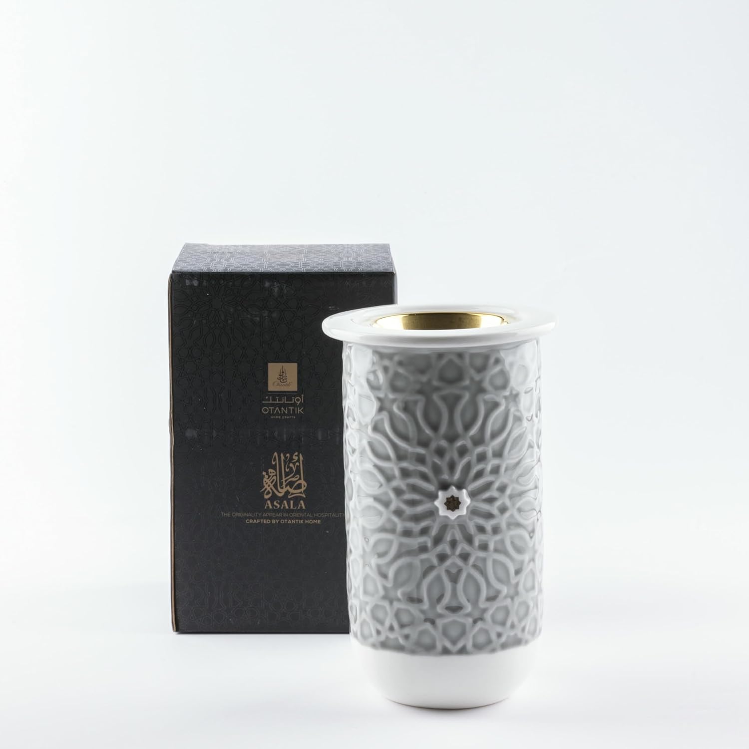 Otantik Asala Premium Porcelain Incense Burner – Grey & Gold Royal Finish – 11×18 cm Elegant Aroma Holder