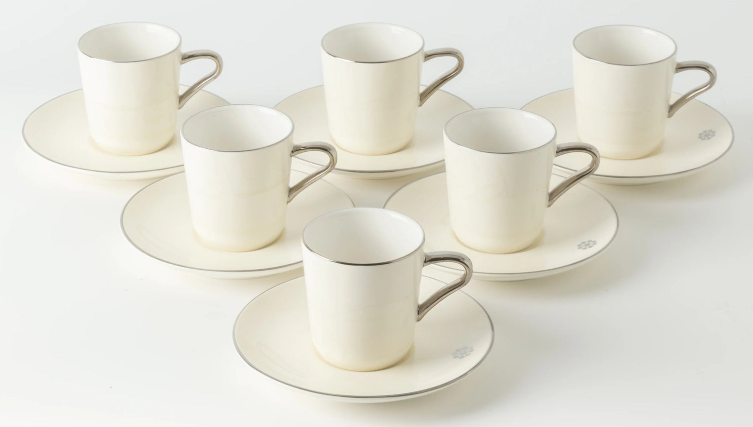 Otantik Mirral Luxury 12-Piece Turkish Coffee Cup & Saucer Set – White with Silver Accent 115CC