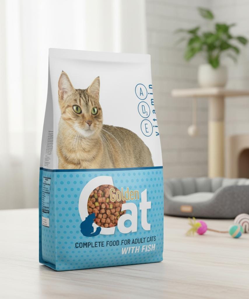 Golden Cat Complete Adult Food 1kg – Ocean Fish Flavor, Promotes Shiny Coat & Healthy Skin for Adult Cats
