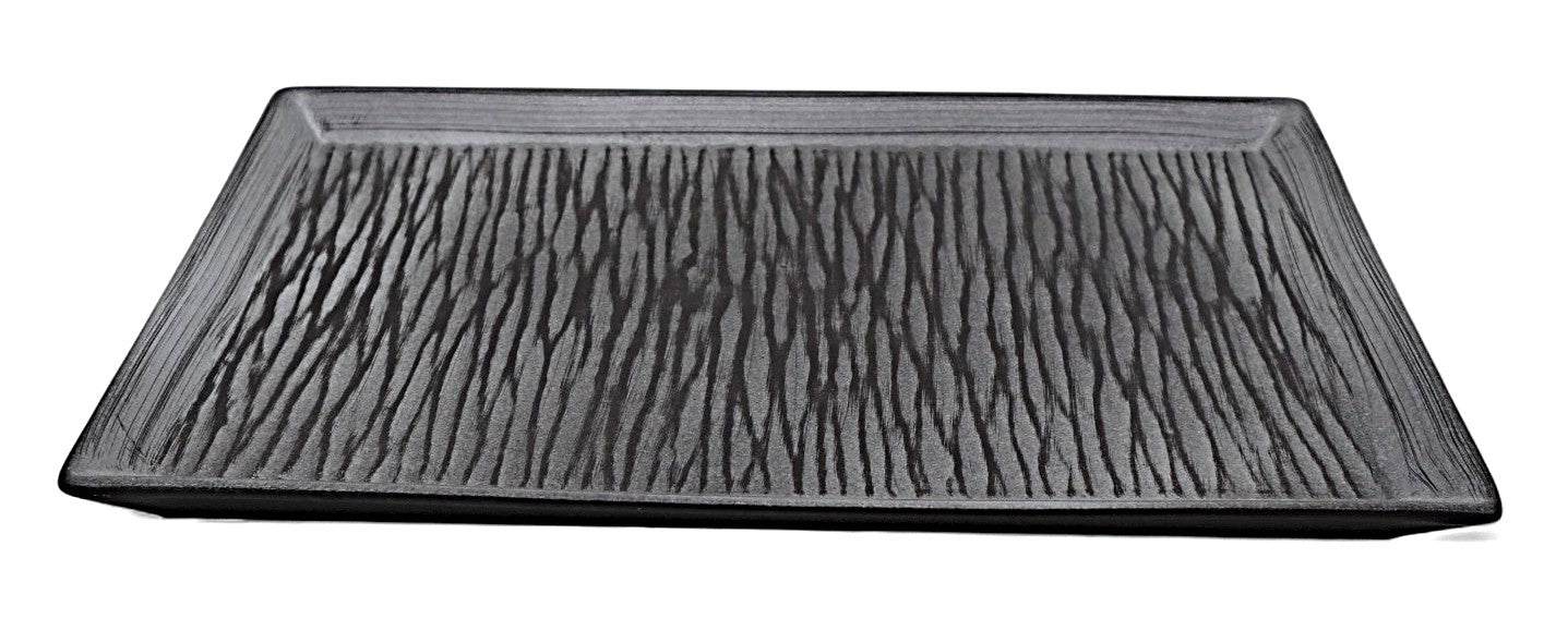 AKDC Ceramic Rectangular Snack Plate 25×16.5 cm – Modern Gray with Black Accents