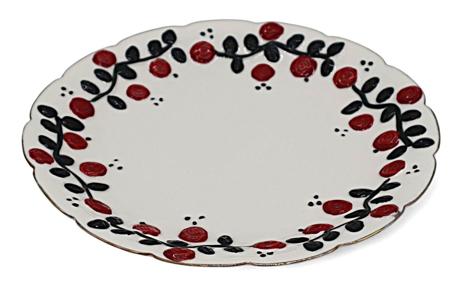 AKDC Porcelain Plate 20cm – White with Red & Black Artistic Design