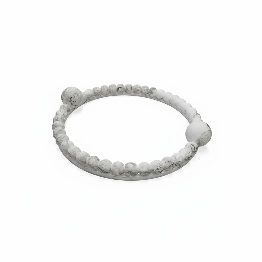 AKDC Luxury Round Glass Serving Tray – White Plaster of Paris Body with Elegant Silver Rim (31 cm)