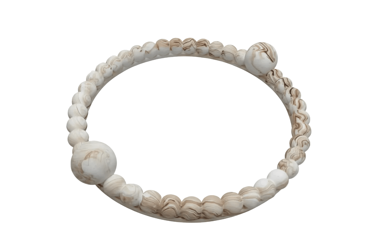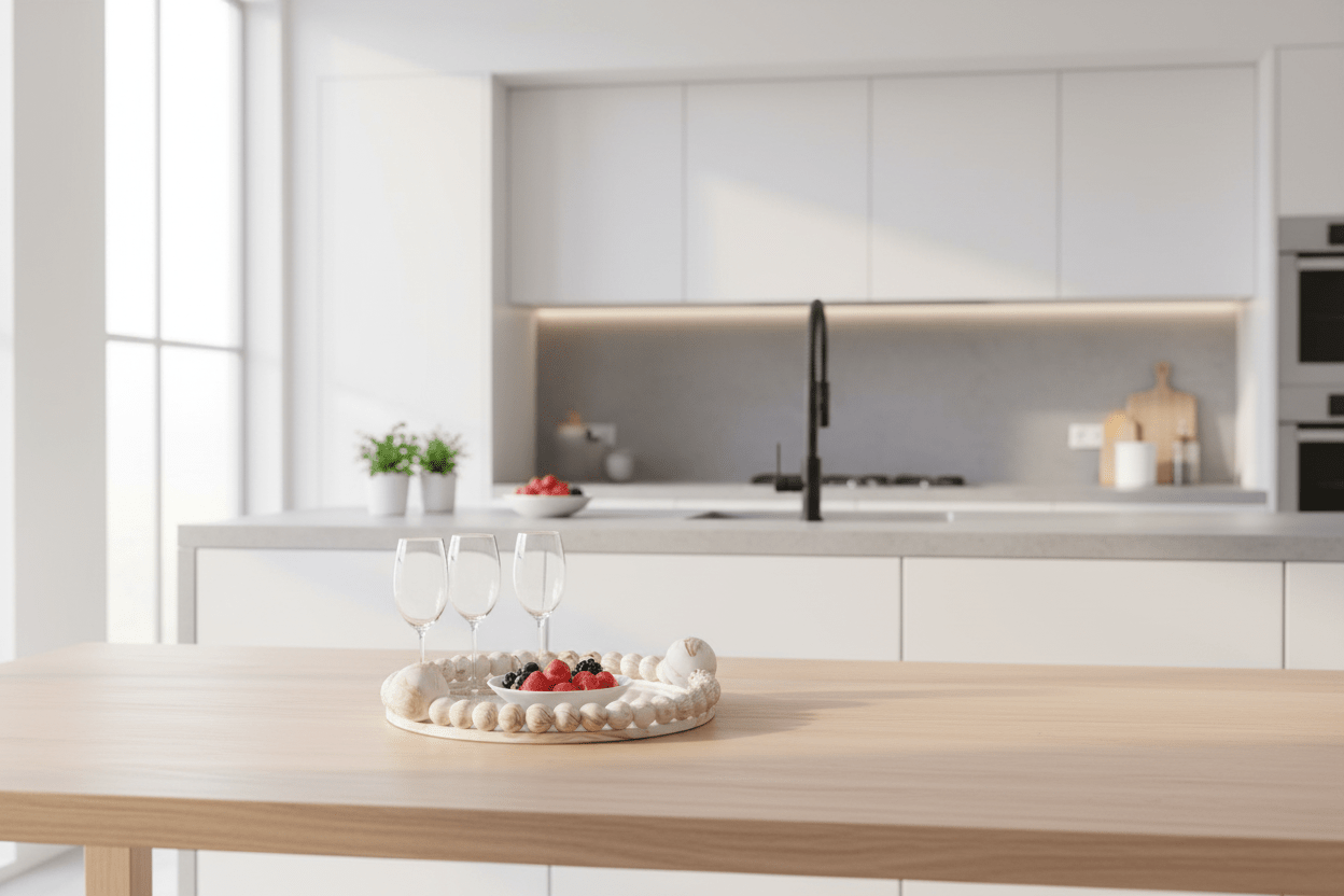AKDC Luxury Round Glass Serving Tray – White Plaster of Paris Body with Rich Gold Rim (31 cm)