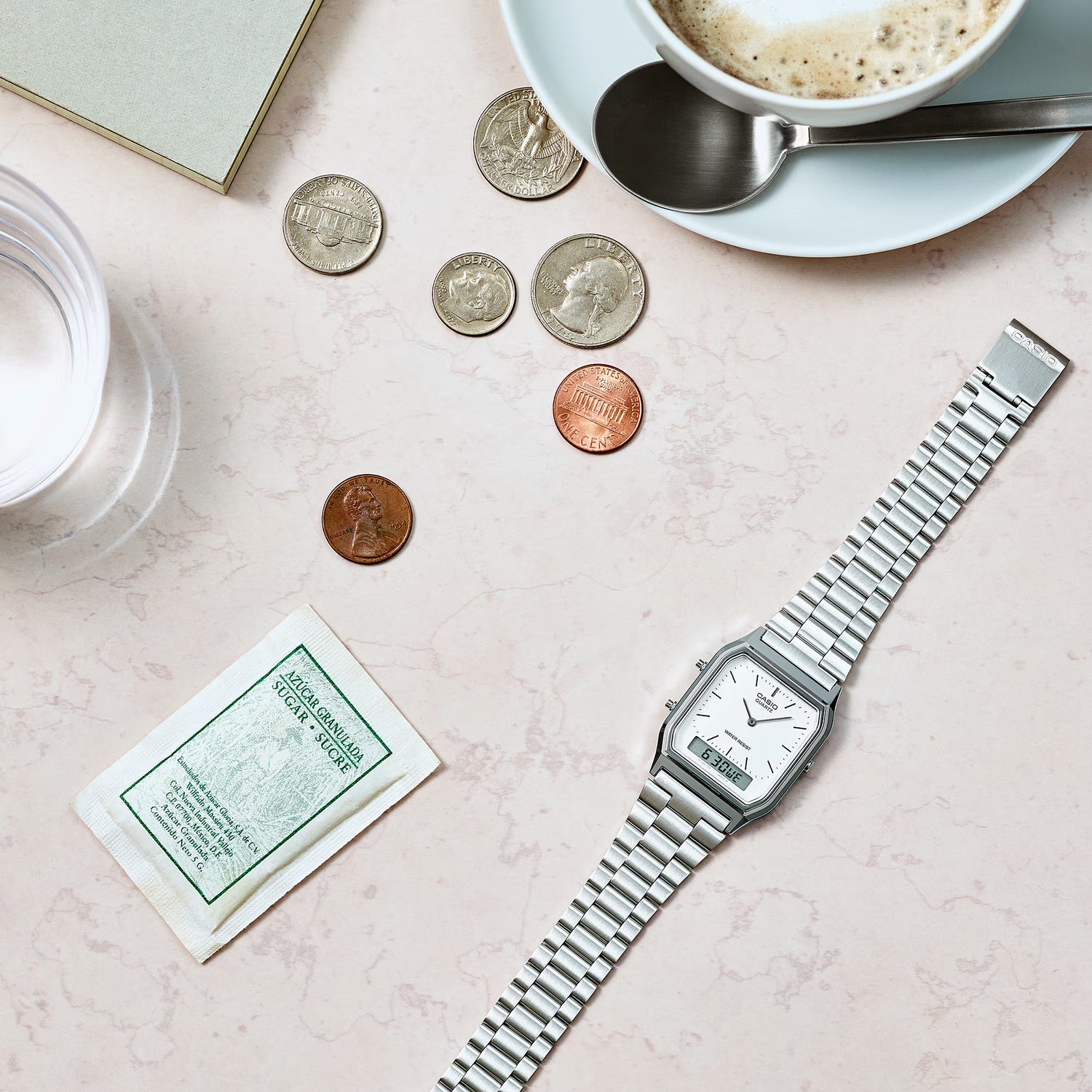 Casio Vintage Series AQ230A-7D White Dial Stainless Steel Watch