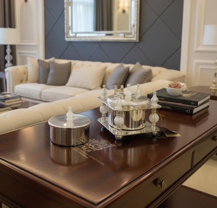 ALMARJAN Decorative Ceramic Incense Burner with Matching Incense Container – Elegant White and Silver Aroma Set for Home, Office, or Prayer Space 13x10 cm