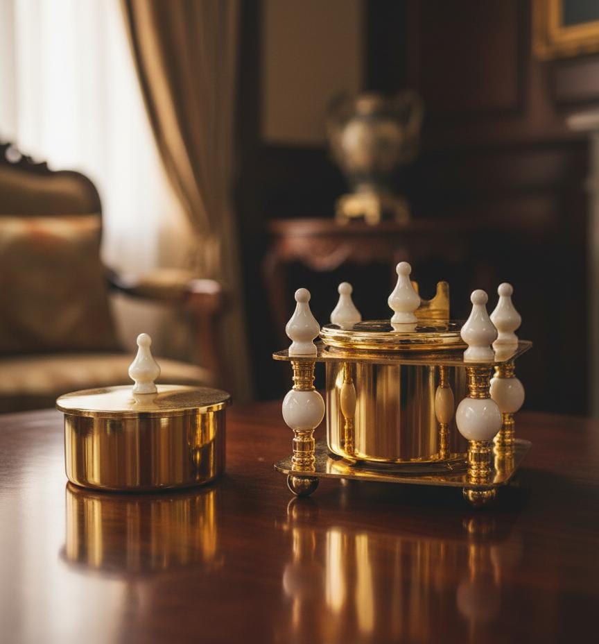 • Premium white and gold ceramic finish enhances luxury appeal.