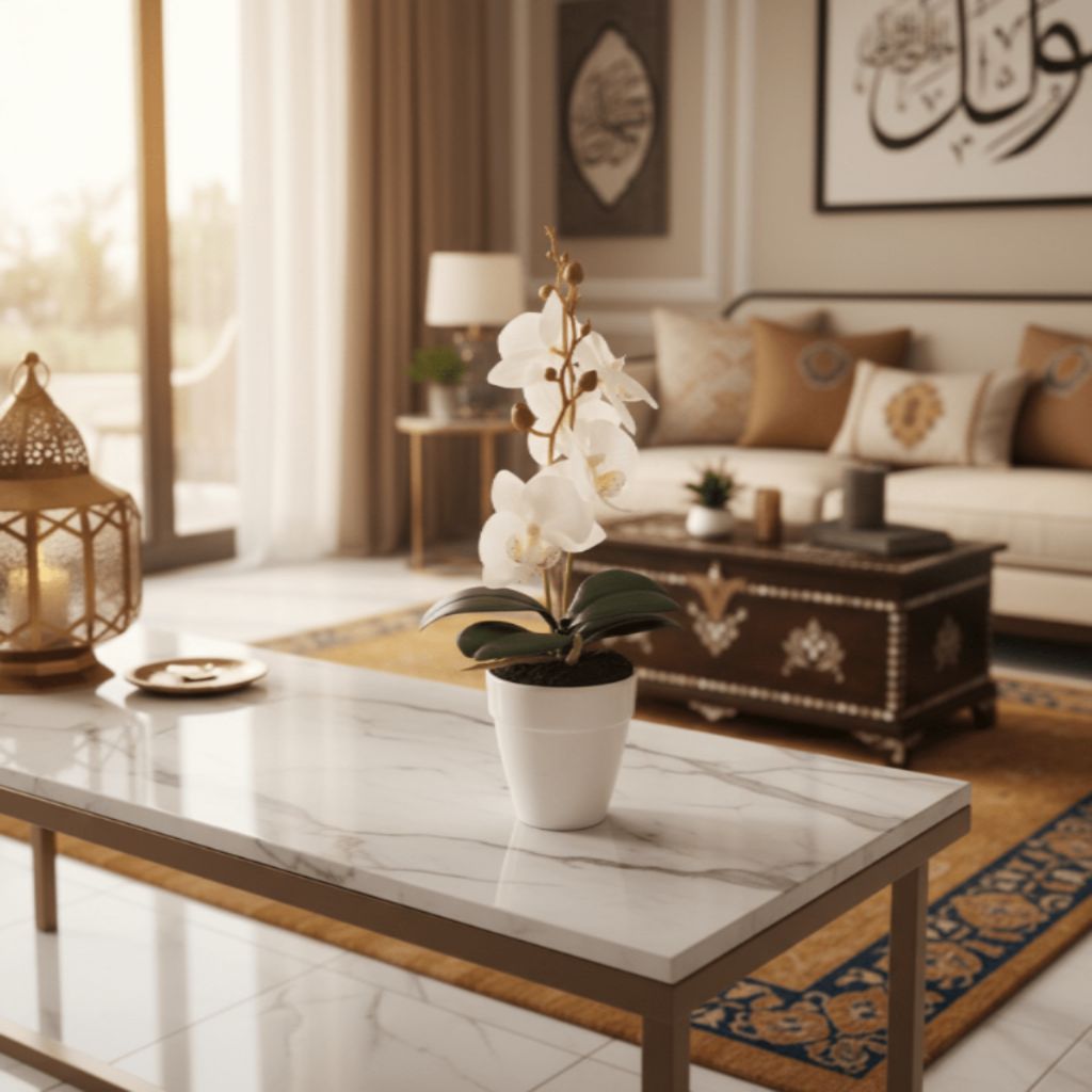 AKDC Ceramic White Pot With Polyster White Orchid Plant 31*7 cm