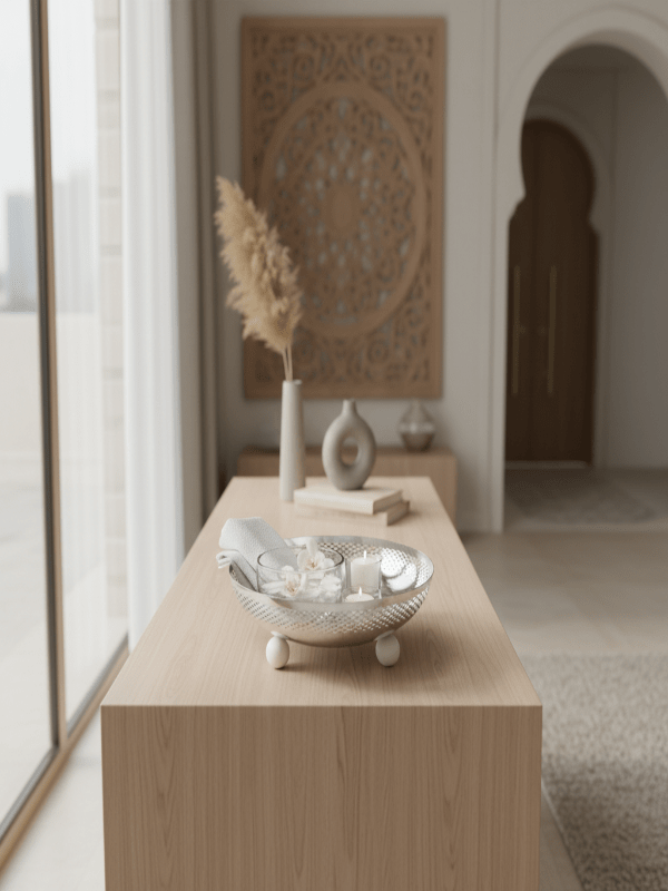 Add a touch of sophistication to your home with this timeless serving bowl that combines Middle Eastern-inspired craftsmanship with contemporary design sensibility.