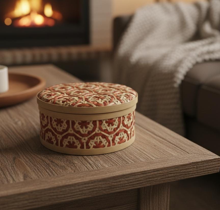 AKDC Round Bamboo Mesh Basket with Lid 20 cm – Brown & Cream Handwoven Food Cover
