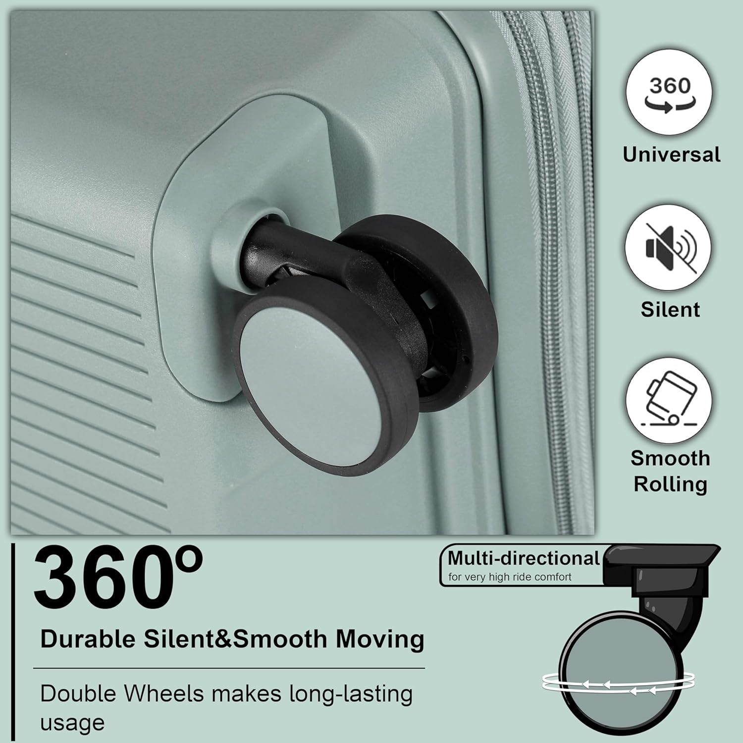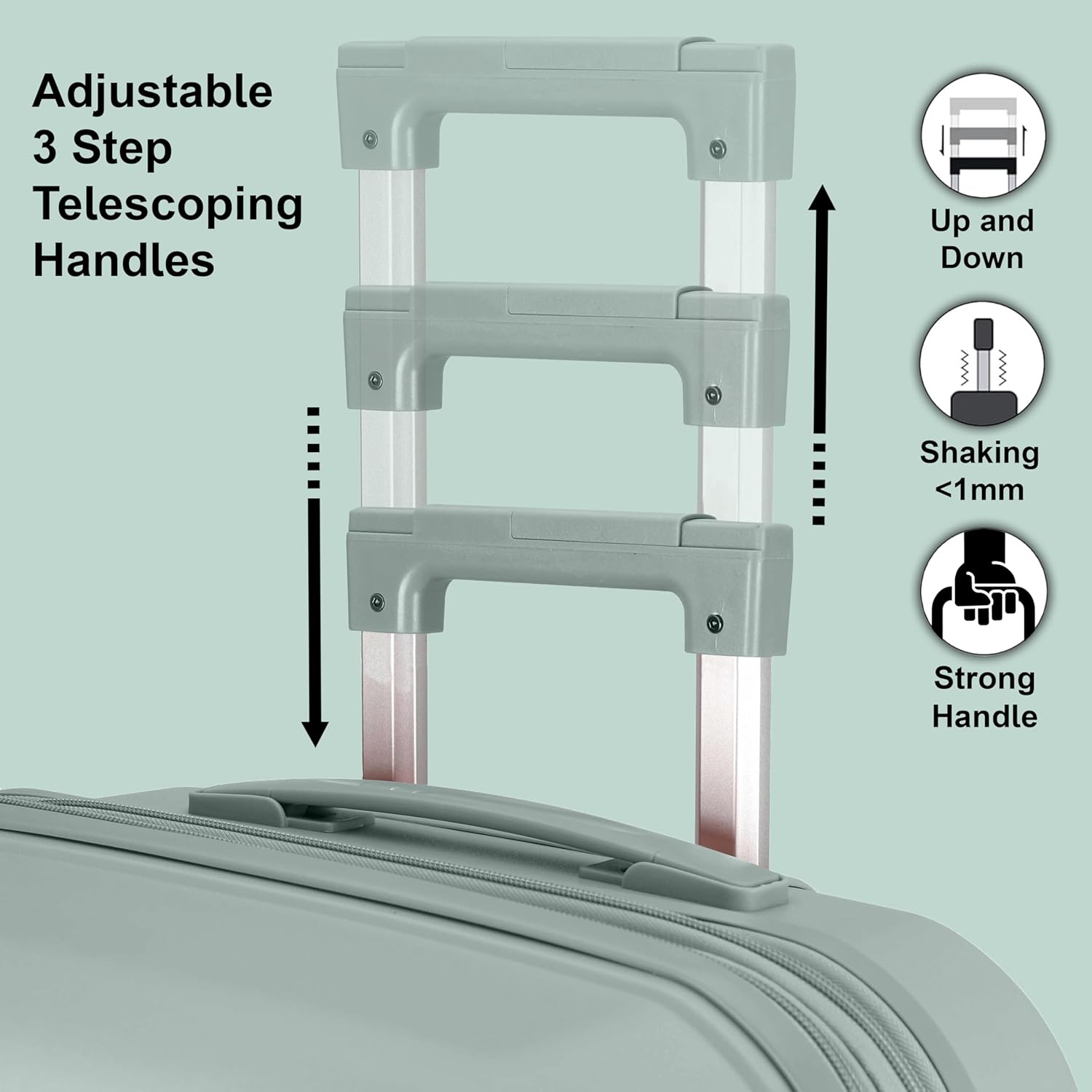 - Lockable, Telescopic Handle with Spinner Wheels: Ergonomic retractable iron handle with matching colored cap of our rolling suitcase is extra light weight while maintaining a high standard for shock absorption and relieves any pressure from your arms while move. And the matching 360°-degree spinner wheels are super smooth and easy to move everywhere.
